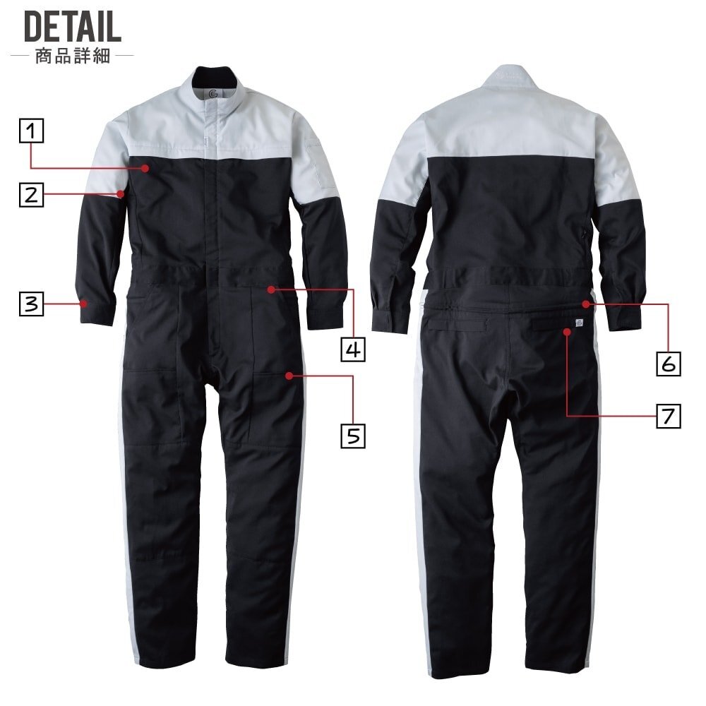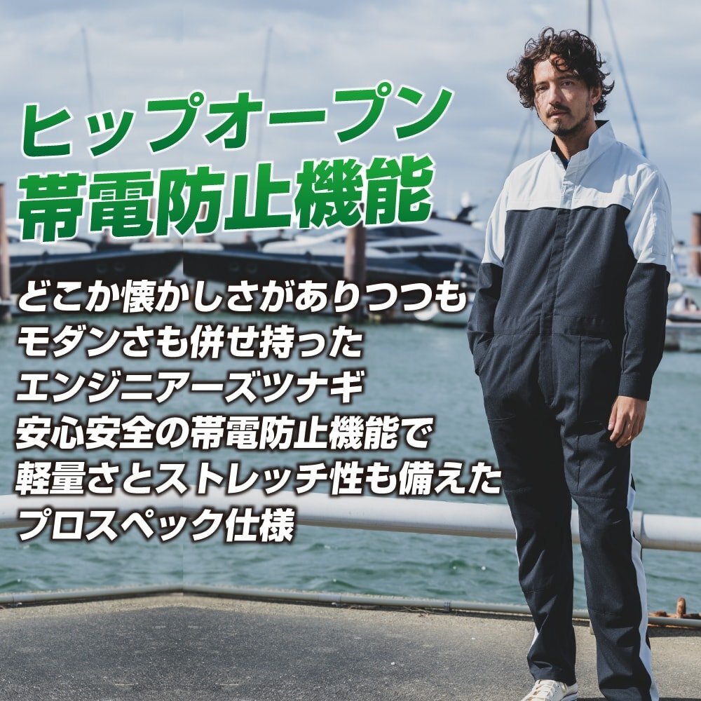 トイレも楽々ヒップオープン機能付き長袖ツナギ