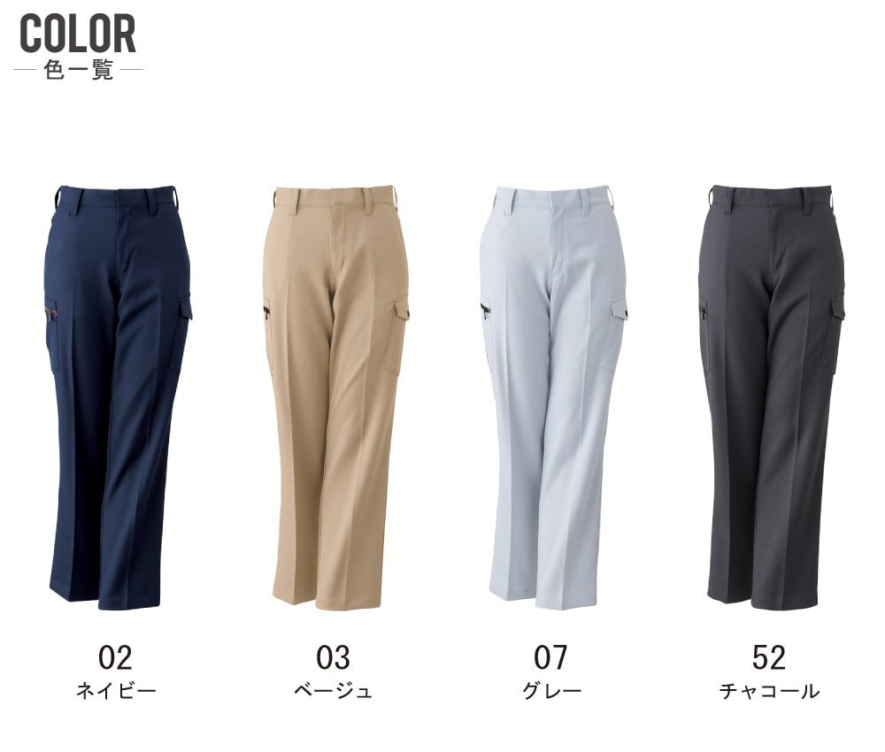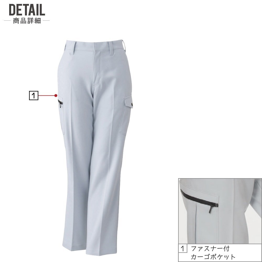 特長:制電/ストレッチ/ノータック/右ファスナー付カーゴポケット