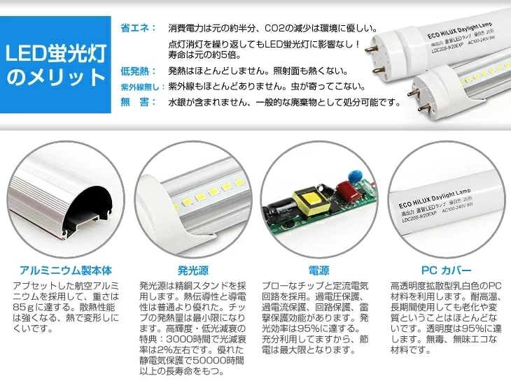驚異的な照射能力と耐久性が持ってます。ムラなく均一の発光で、すっきりと対象物を照らします。 ◆驚きの長寿命: LEDの放熱率が少ない、光衰えも低い、寿命は一層長くなります。 ◆航空アルミを採用: 航空アルミニウムを採用して散熱性能は強くなり、熱で変形しにくいです。 ◆安全性が高い: LED蛍光灯は低電圧駆動を採用して、安全性が高い。 ◆高透明度材料: 高透明度拡散型乳白色のPC材料を利用します。耐高温、長期間使用することができます。 ◆広い使用範囲: 商品棚、ショーケース、陳列窓、トイレ、台所、ホテル、広告、レストランなどに適合! 【保証】 ◆当商品は12っヶ月保証となります。 ◆お届けから1週間以内にご連絡のあった不良品の保証対応の送料は当方が負担いたします。 ◆保証期間内の不良品ですが、交換のみ対応しております。往復送料はお客様負担となります。在庫がない時だけ返金しますので、ご了承ください。 |