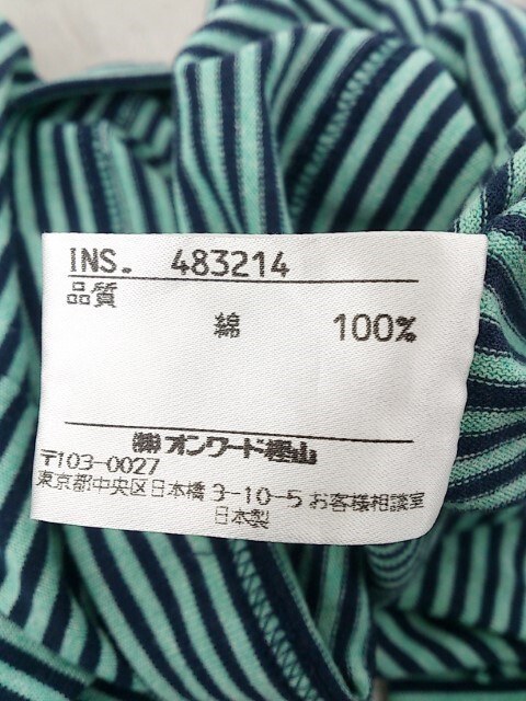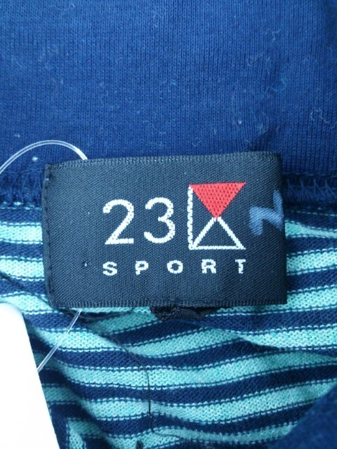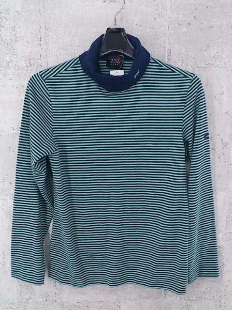 ◇ 23区 SPORT ニジュウサンク ボーダー ハイネック 長袖 Tシャツ カットソー サイズM グリーン ネイビー レディース P