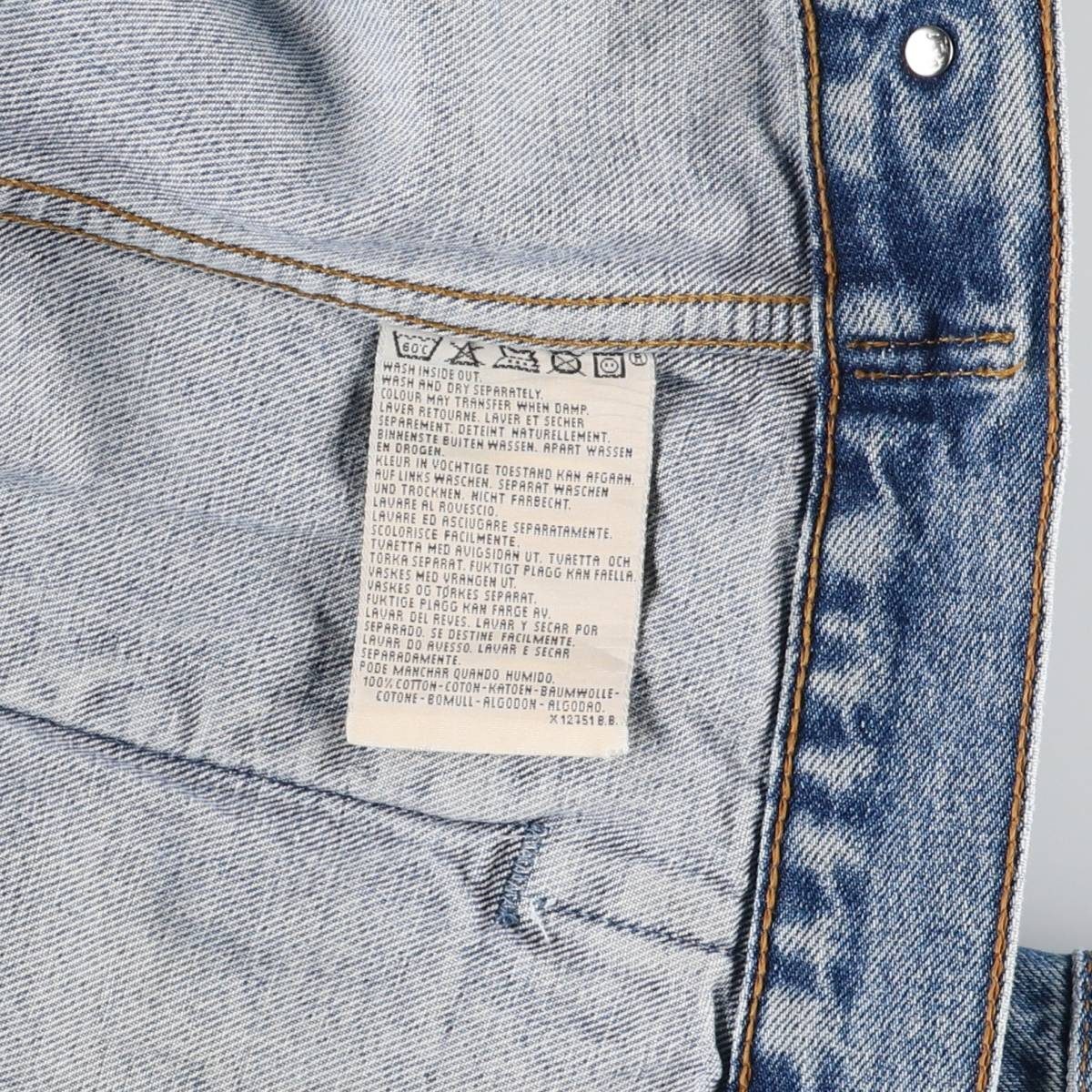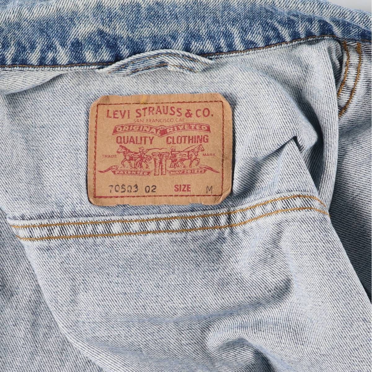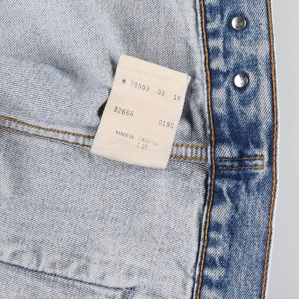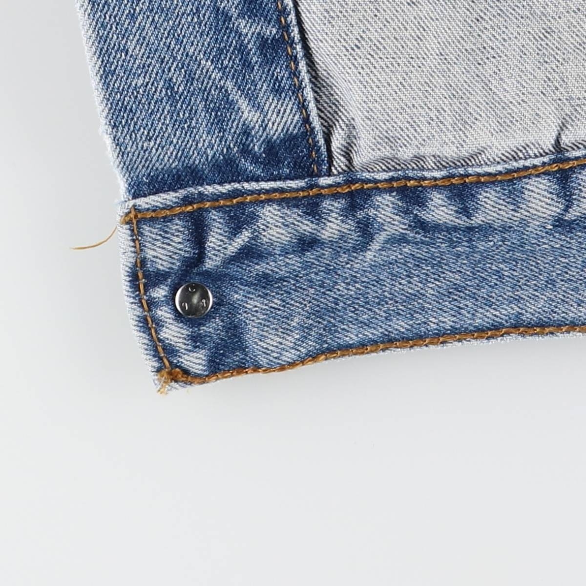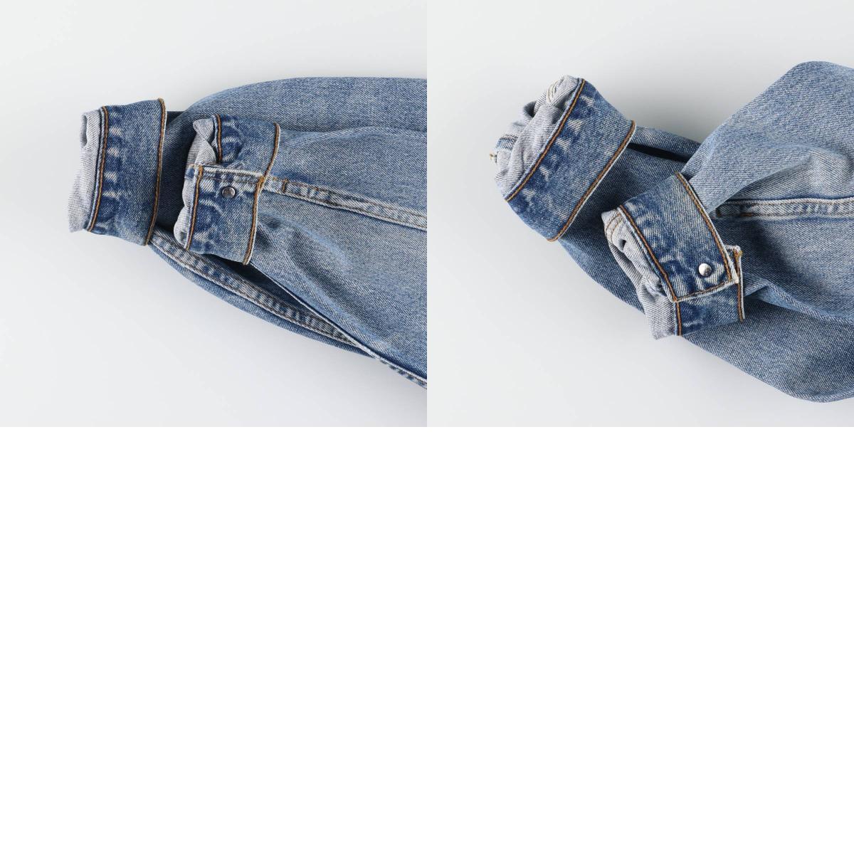 | 表記サイズ: M 着丈: 61cm 身幅: 57cm 肩幅: 48cm 袖丈: 59.5cm ![]() | ![]() ランク:C USEDデニムですので使用感、擦れ、色落ちなどございますが、まだまだご愛用していただけます。 古着という事をご理解の上ご注文よろしくお願いします。 【状態追記】 ●前、左右袖先・右腹部ポケット内に汚れ ●前、腹部に擦れ ●後、左右袖先に汚れ ●内側、襟・裾・左右袖先に汚れ |