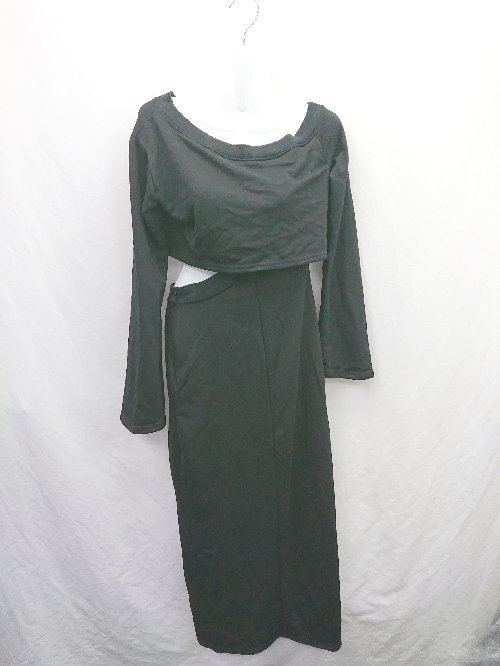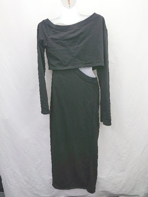 ◇ ⊇ ノーブランド セパレート風 長袖 ロング ワンピース サイズ表記なし ブラック系 レディース E