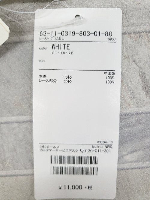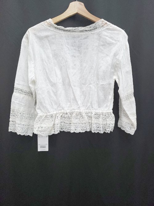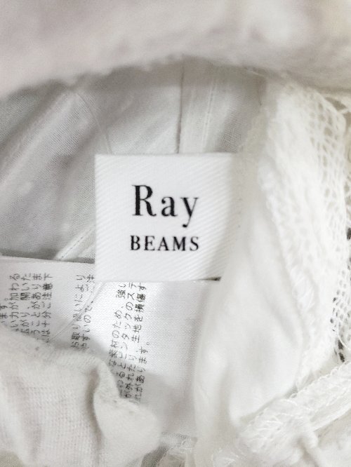 ◇ ⊂ 未使用 Ray BEAMS レイビームス レース ペプラム 長袖 ブラウス カットソー ホワイト レディース E