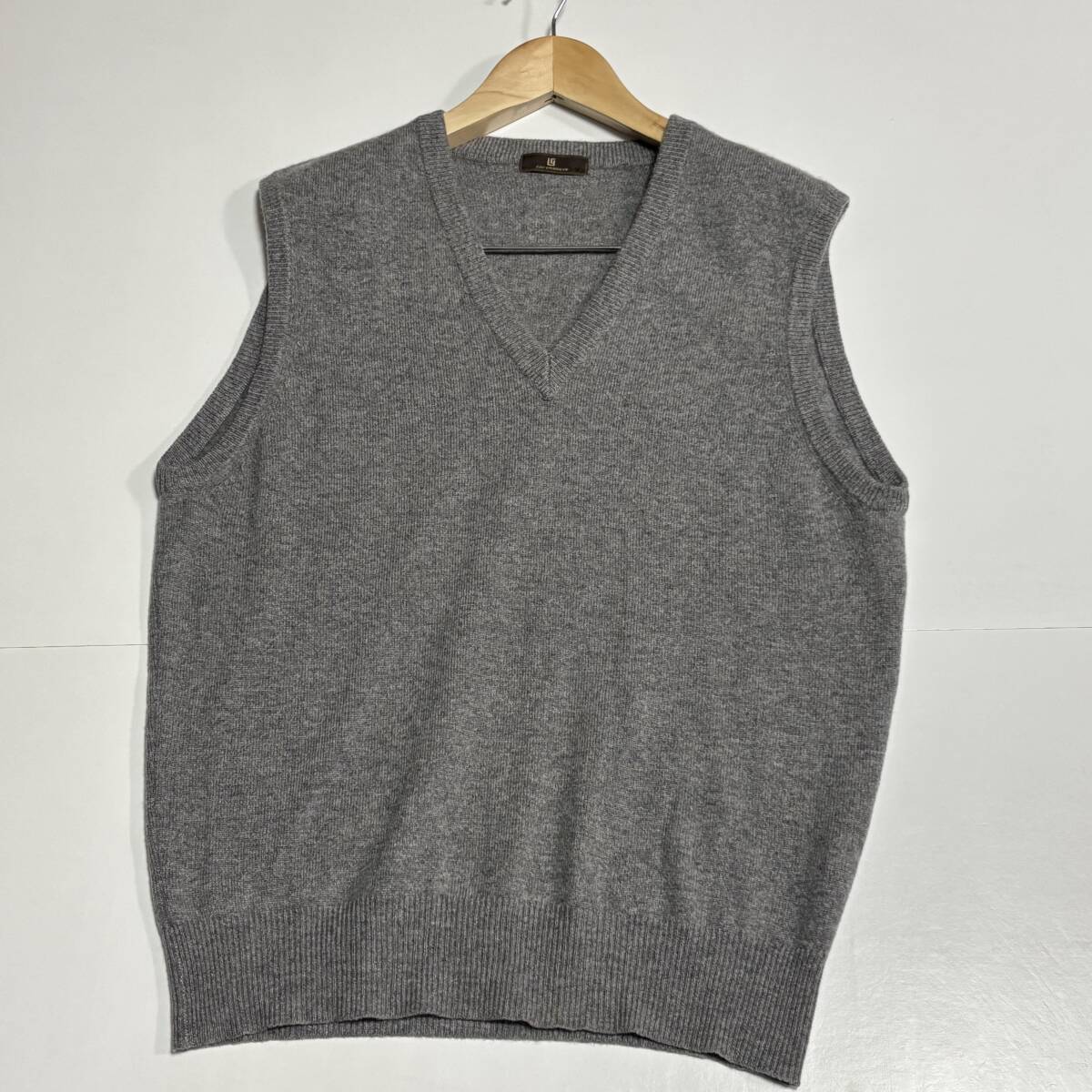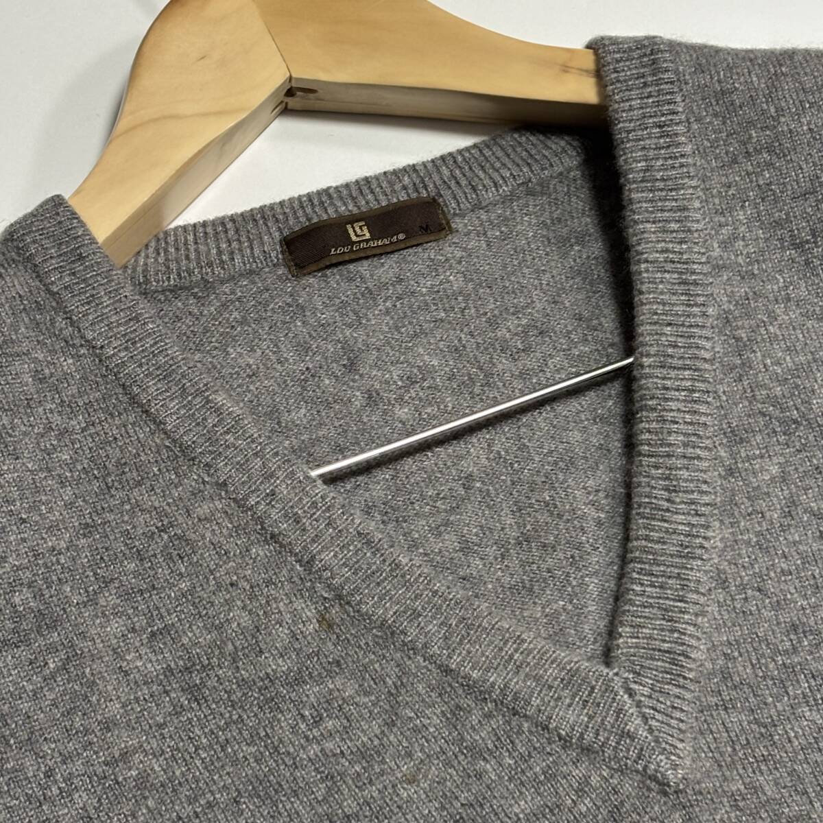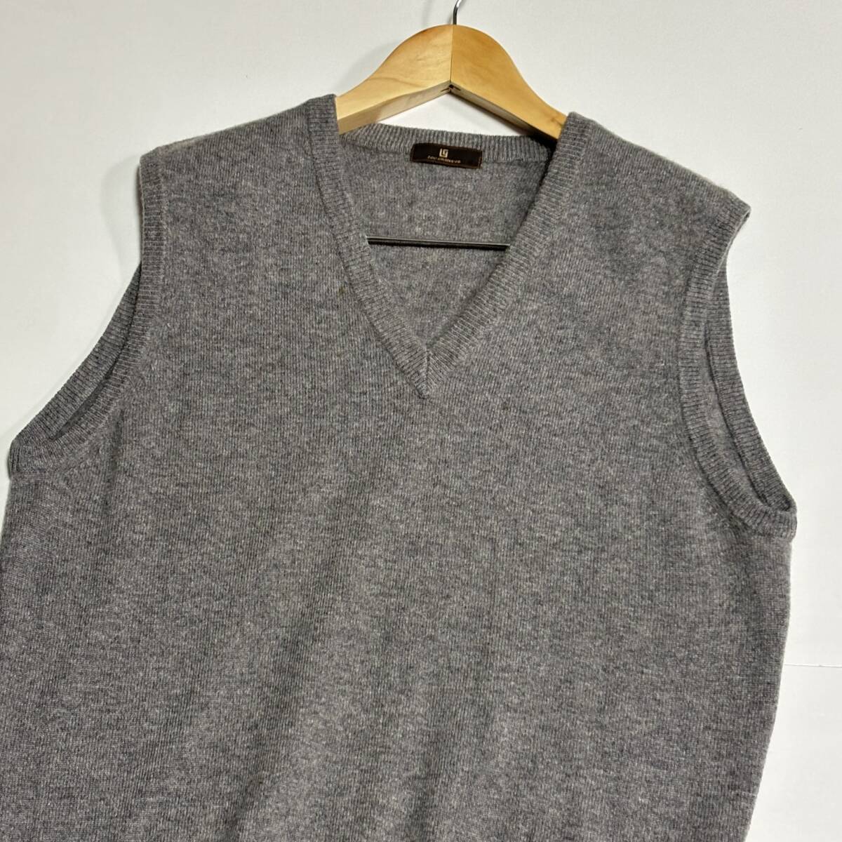 モンゴル製 LOU GRAHAM カシミヤ100 グレー系Vネック ベスト サイズM ②