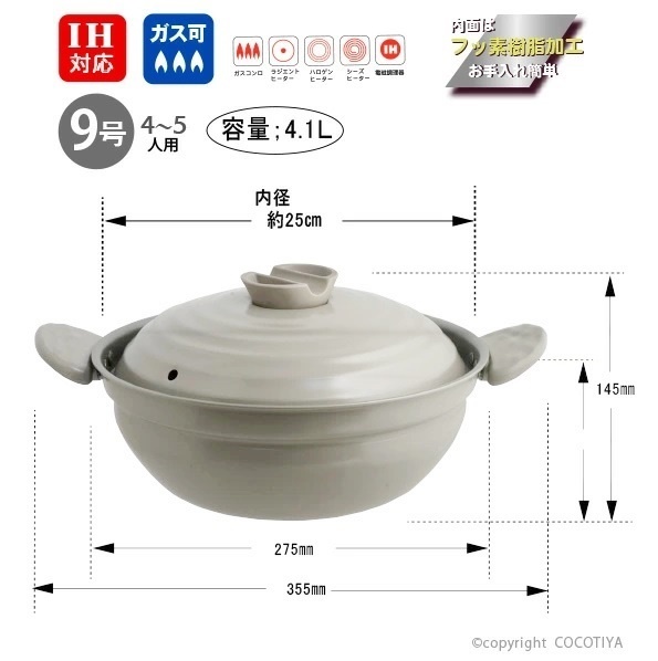 リビング 宴和 アルミIH軽い土鍋風卓上鍋 9号(4~5人用)
