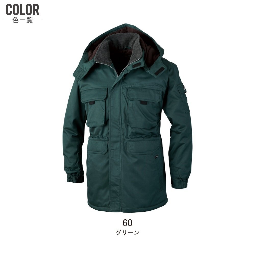 ジーベック 秋冬 中綿 防寒 コート 撥水加工 脱着式フード 袖口マジックテープ 771 色:グリーン サイズ:LL ★ 対象2点 送料無料 ★
