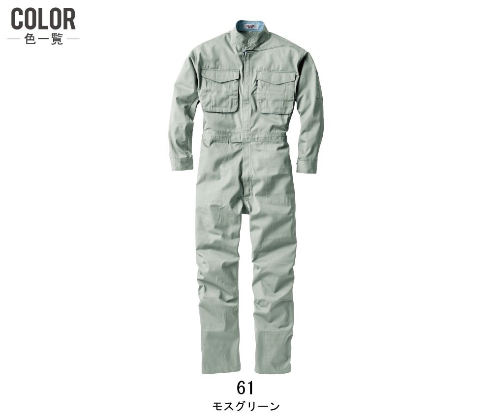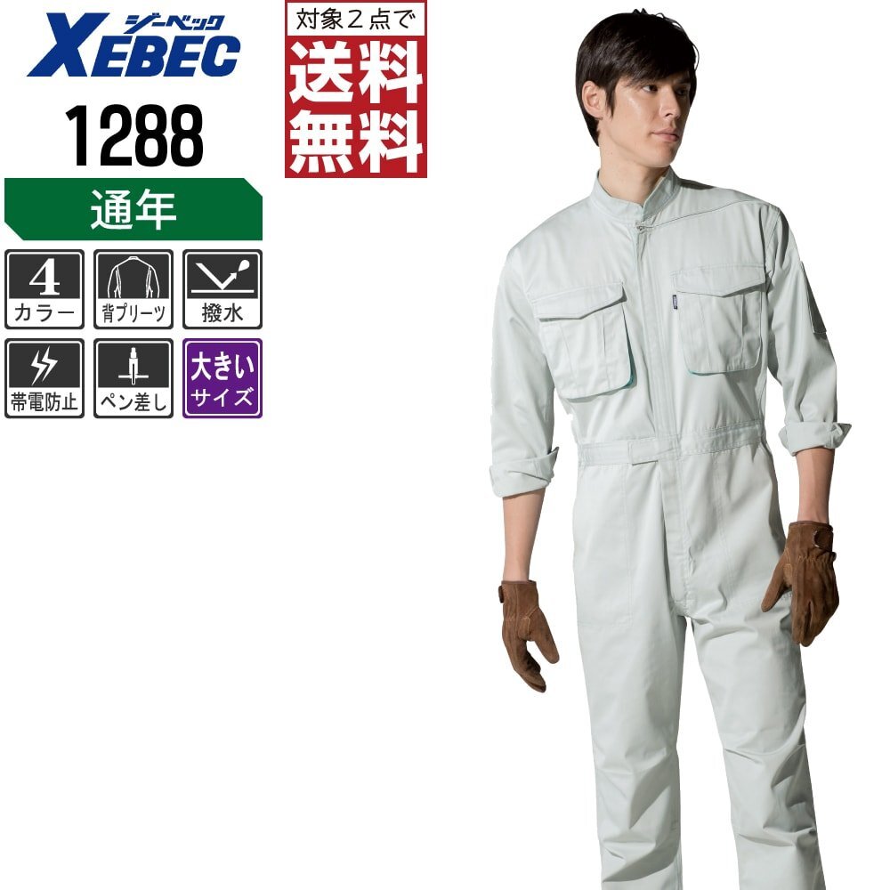 ジーベック 通年 長袖 つなぎ 定番 楽脱ファスナー 帯電防止 1288 色:モスグリーン サイズ:5L ★ 対象2点 送料無料 ★