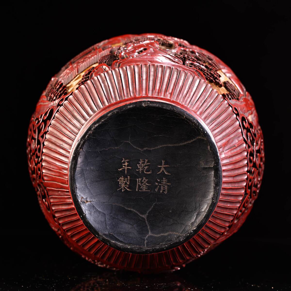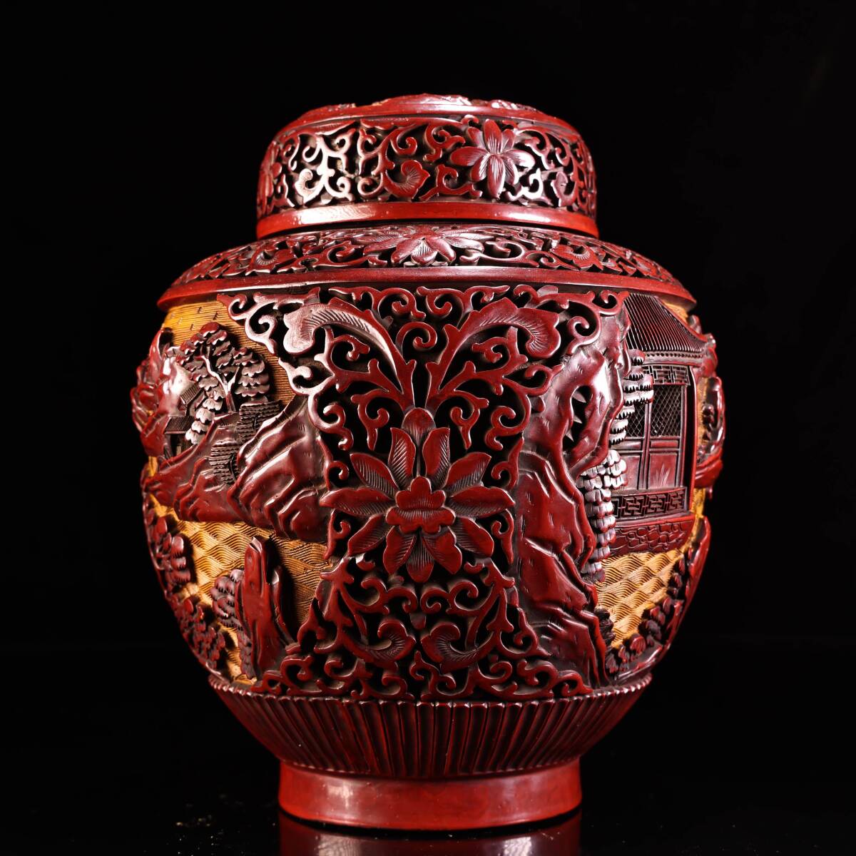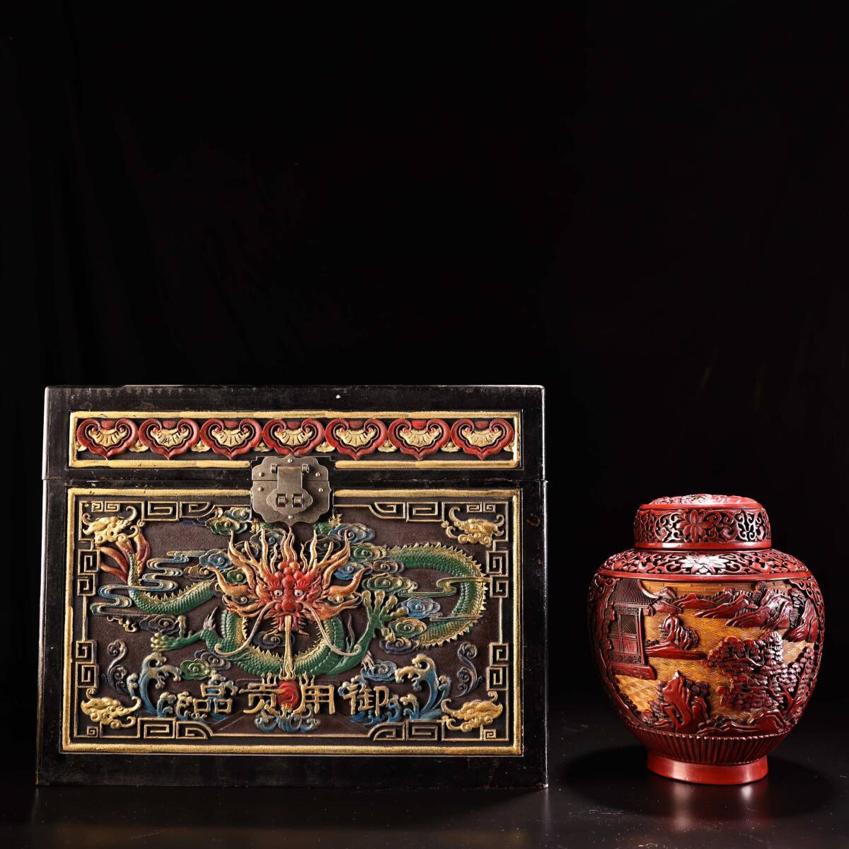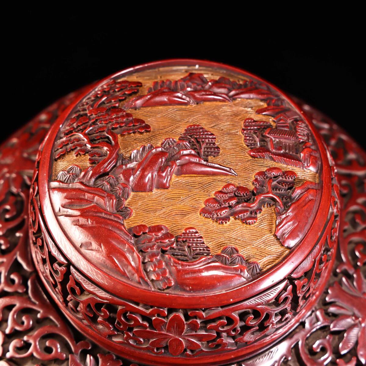 館蔵 大清乾隆年製 木胎漆器 剔紅 堆朱 山水紋 罐 古擺件 古置物 古董品 時代物 賞物 貴重 稀少珍品 中国古美術 古美味 蔵出