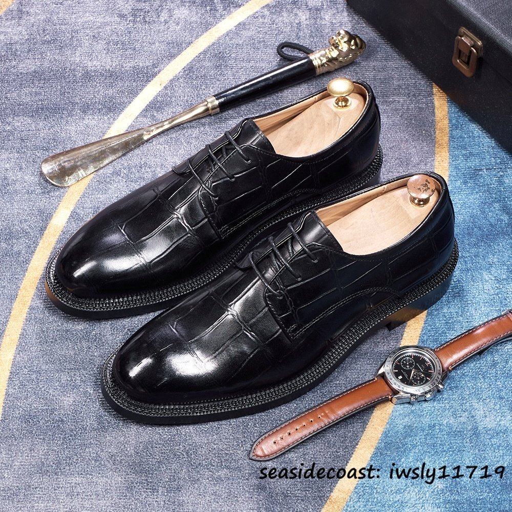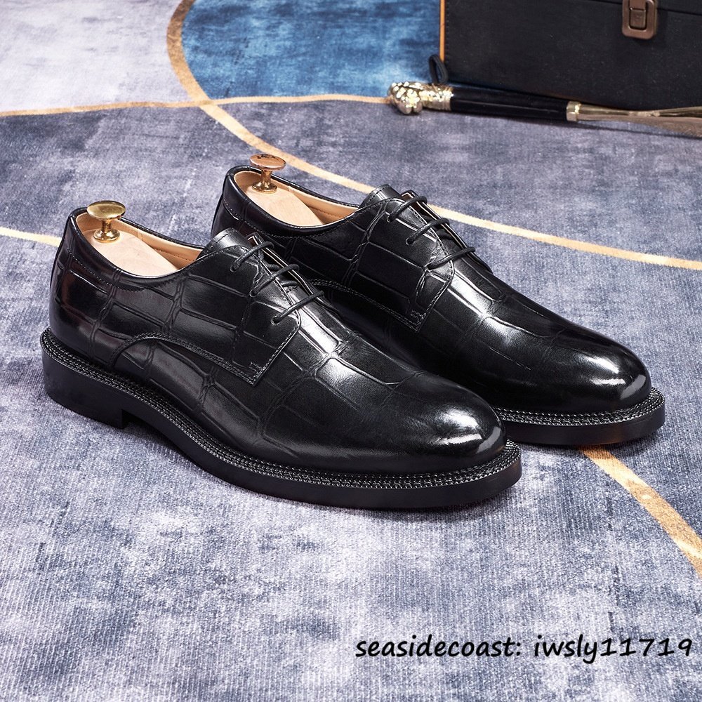 定価9万超■メンズ レザーシューズ 本革 ビジネスシューズ 職人手作り ドレスシューズ 革靴 紳士靴 通勤 牛革 フォーマル ブラック 25.5cm