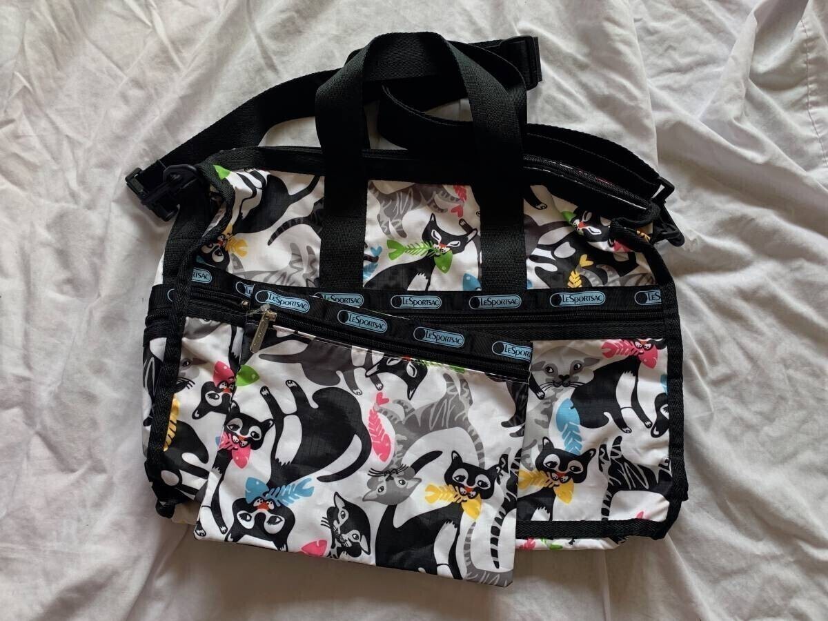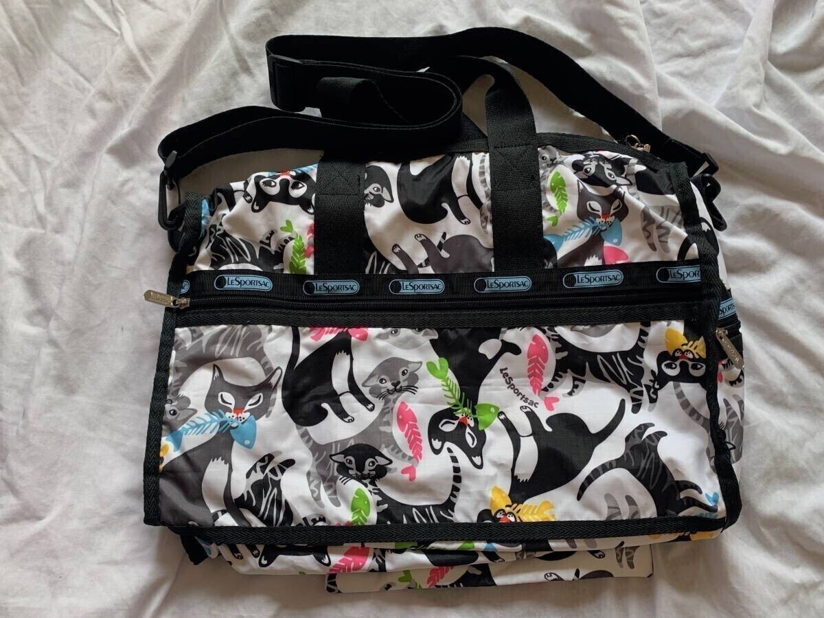 LeSportsac レスポートサック 猫柄 ボストン ナイロンショルダーバッグ 長期保管品 ポーチ付き  送料無料  未使用品