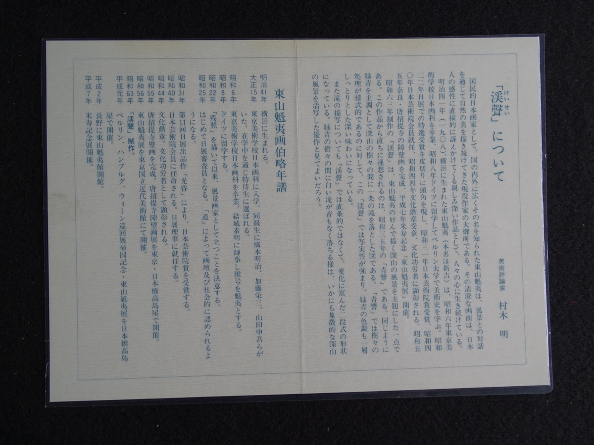 ・作者名: 東山 魁夷(文化勲章受章)・画題: 渓響 ・技法: 彩美版 限定複製(987/1000)H〈GT104〉IO-1-R4-5-