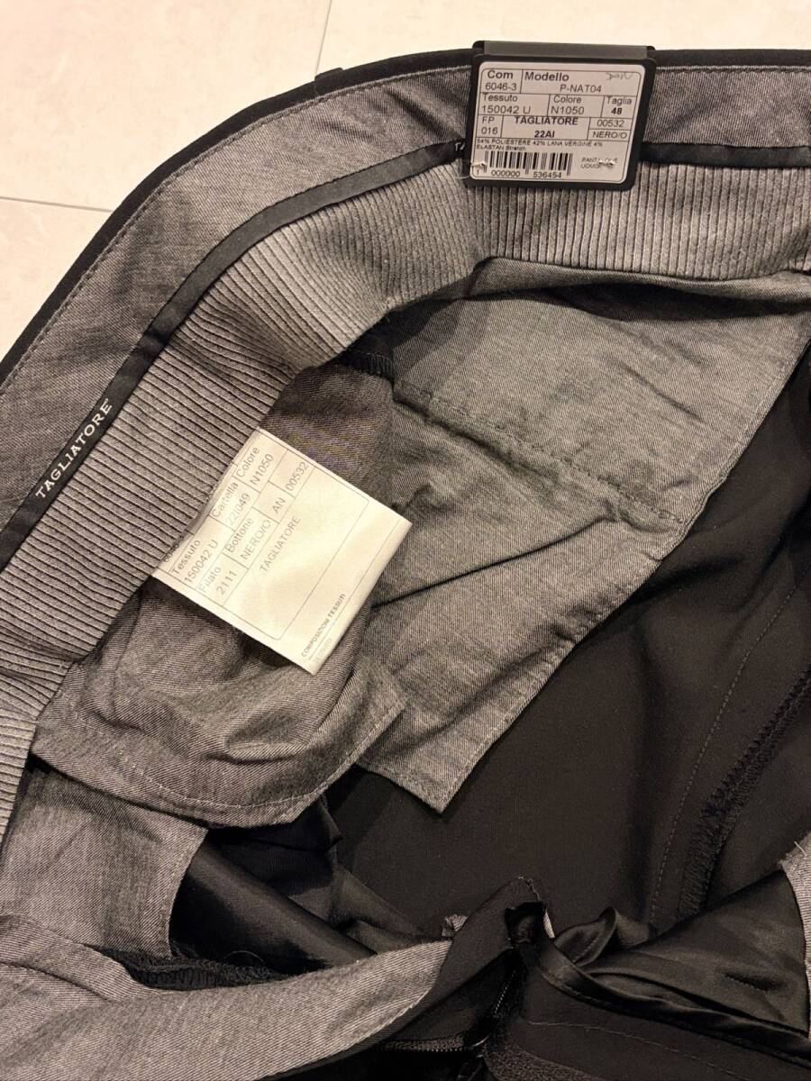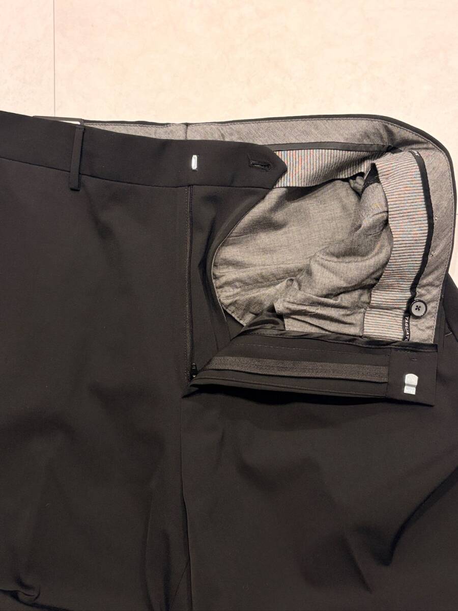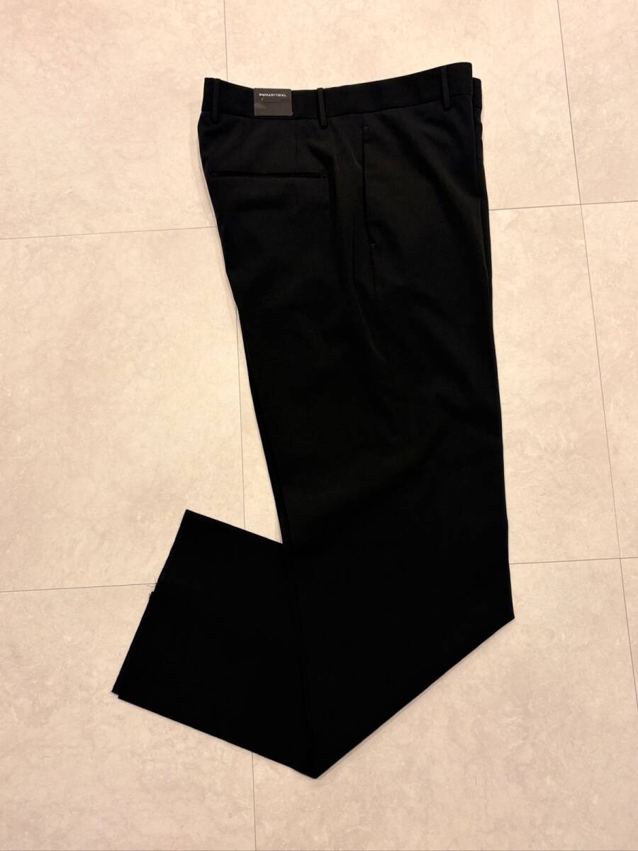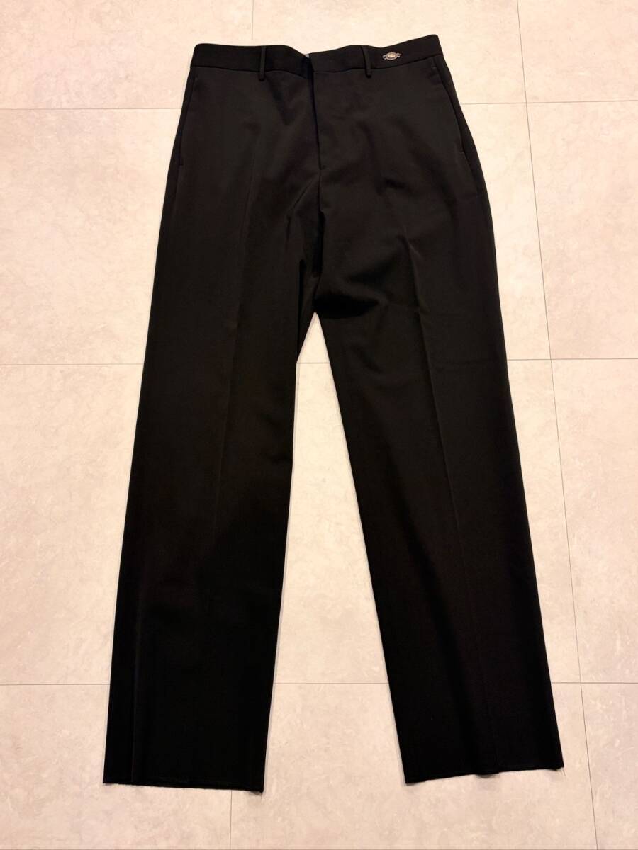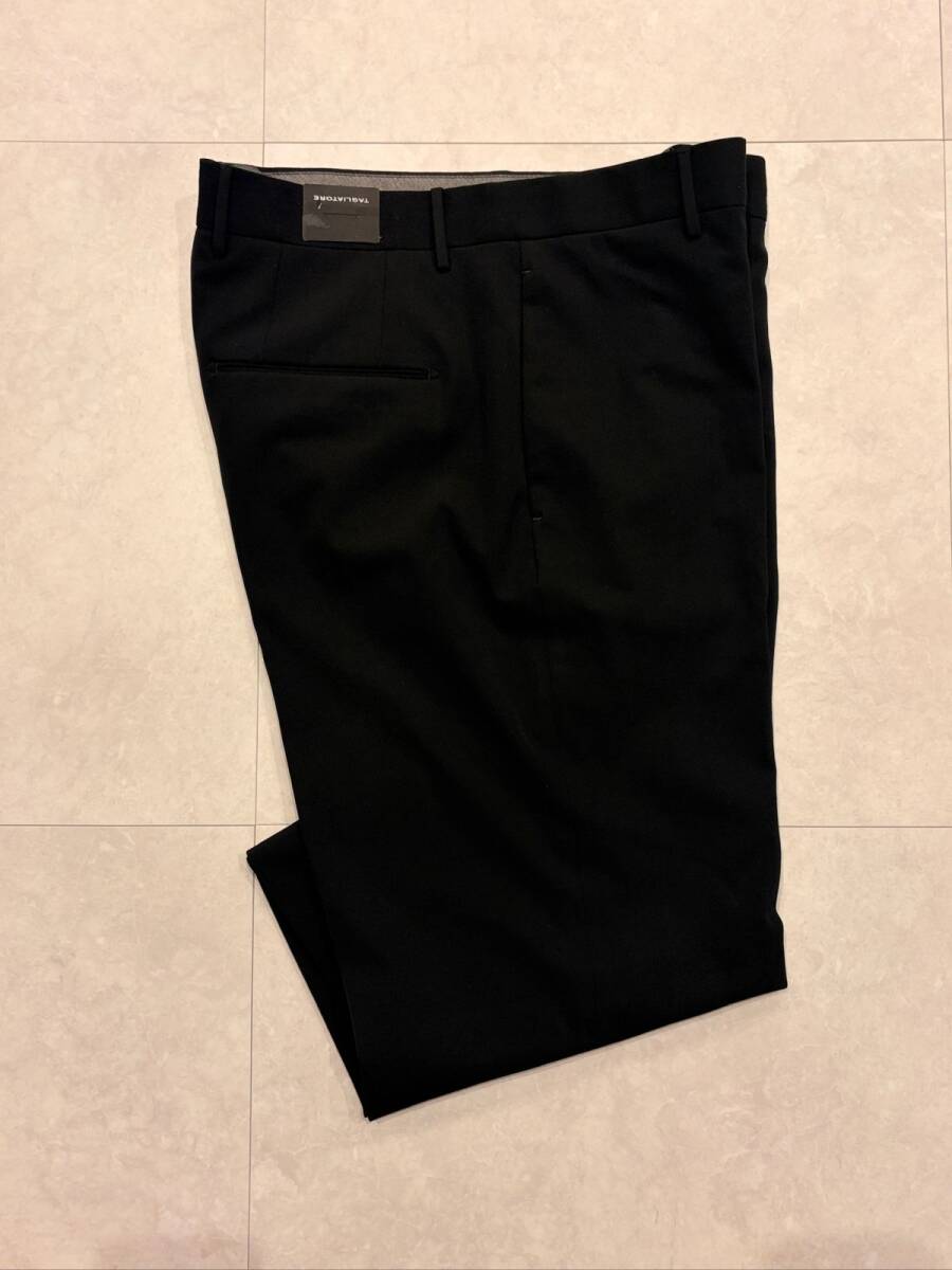タリアトーレのドレスパンツは、ブランドが得意とするシャープな裁ちと優雅なラインを軸に、機能性を高めた“3者混トラベラー素材”を採用したワイドシルエットモデルです。 使用される生地は、ウールを主体にポリエステルとエラスタンをブレンドした三者混で、しなやかな落ち感と高い防シワ性、さらに適度な伸縮性を併せ持つ点が特徴です。移動や長時間の着座でもシルエットが崩れにくく、タリアトーレらしい美しいラインを終日キープできる、まさに“トラベラー”の名にふさわしい実用素材です。黒の発色も深く、ウールの微光沢とポリエステルのクリアな表情が相まって、都会的で洗練されたムードを纏います。 ワイドシルエットは、単に幅を広げたものではなく、ウエストから裾へ向けて自然に流れる縦のラインが強調されるパターン構築がポイントです。ヒップや腿周りに余裕を持たせつつも、裾までストンと落ちる直線的なフォルムにより、ドレッシーでありながらモダンな存在感を演出します。トラベラー素材特有の落ち感が加わることで、歩くたびに柔らかいドレープが生まれ、ワイドながらも非常に品のある佇まいに仕上がっています。 黒のワイドドレスパンツとして汎用性も高く、ジャケットスタイルはもちろん、ニットやレザーと合わせてもモード感ある着こなしが可能です。タリアトーレの精密なテーラリングと機能素材の利便性が高度に融合した一本です。 品名 :Tagliatore / タリアトーレ 素材:ポリエステル54% ラナヴァージンウール42% ポリウレタン2% 表記サイズ :48 ウエスト:86cm 股上:31cm 股下:84cm わたり幅:34cm 裾幅:23cm ※実寸値となりますが誤差はご了承ください。 ※迅速なお取引を心がけさせていただいております。オークション終了より24時間以内にご連絡をいただけない場合、土日祝日を除き48時間以内にお支払い手続きをいただけない場合は、お取引の意思なしと判断させていただき取引キャンセルとさせていただきます。 万が一上記が不可の場合は事前にご連絡いただくか、入札をお控えいただきますようお願い申し上げます。 ※なるべく現物に近いお色味で撮影するよう心掛けておりますが、閲覧環境の違い等によって違いが出る場合があります。 差し替えトラブルを避ける意味でも上述した旨含め、イメージと違う等での返品は受け付けておりません。 百貨店並みのサービスを求める方や神経質な方の入札はお控えいただきますようお願い申し上げます。 また、差替えやSNS使用後の返品等を防止するためためにも、原則返品には応じられません。 疑問点や心配事等がある場合は入札前に質問欄にてお問い合わせください。 ※当方が出品するすべての商品は間違いなく本物ブランド品となりますので、安心してオークションにご参加ください。 万が一、第三者等により偽物と判断された場合、商品の返品、お支払いただきました全額を返金をいたします。 |