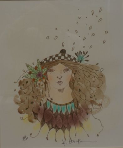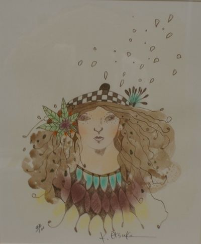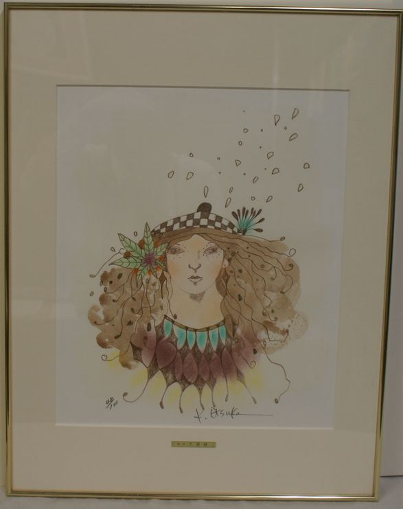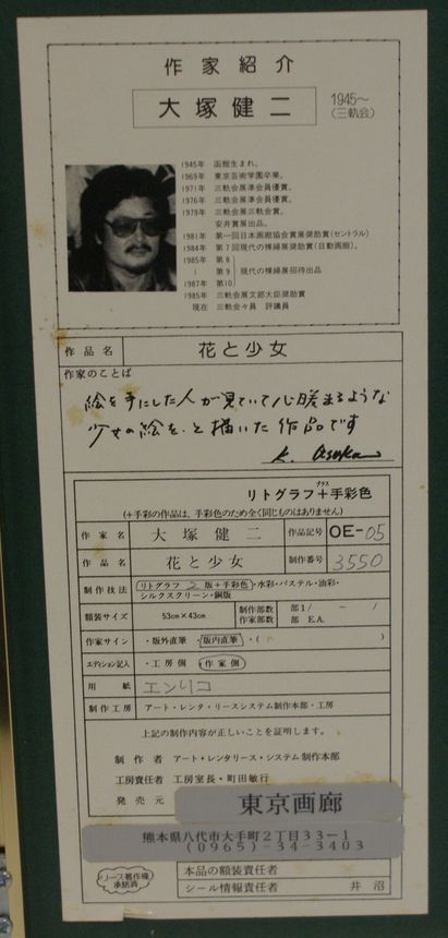 ・作者名: 大塚 健二 ・画題: 花と少女 ・技法:リトグラフ(48/100〈Aー439)(H1-R4-6-24-98.5)