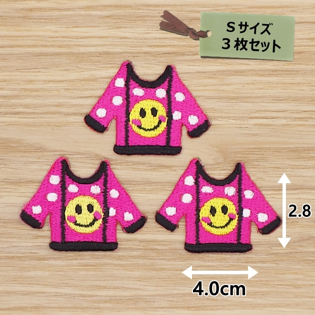 アイロンワッペン(洋服スマイル ピンク)(Sサイズ) 3個セット