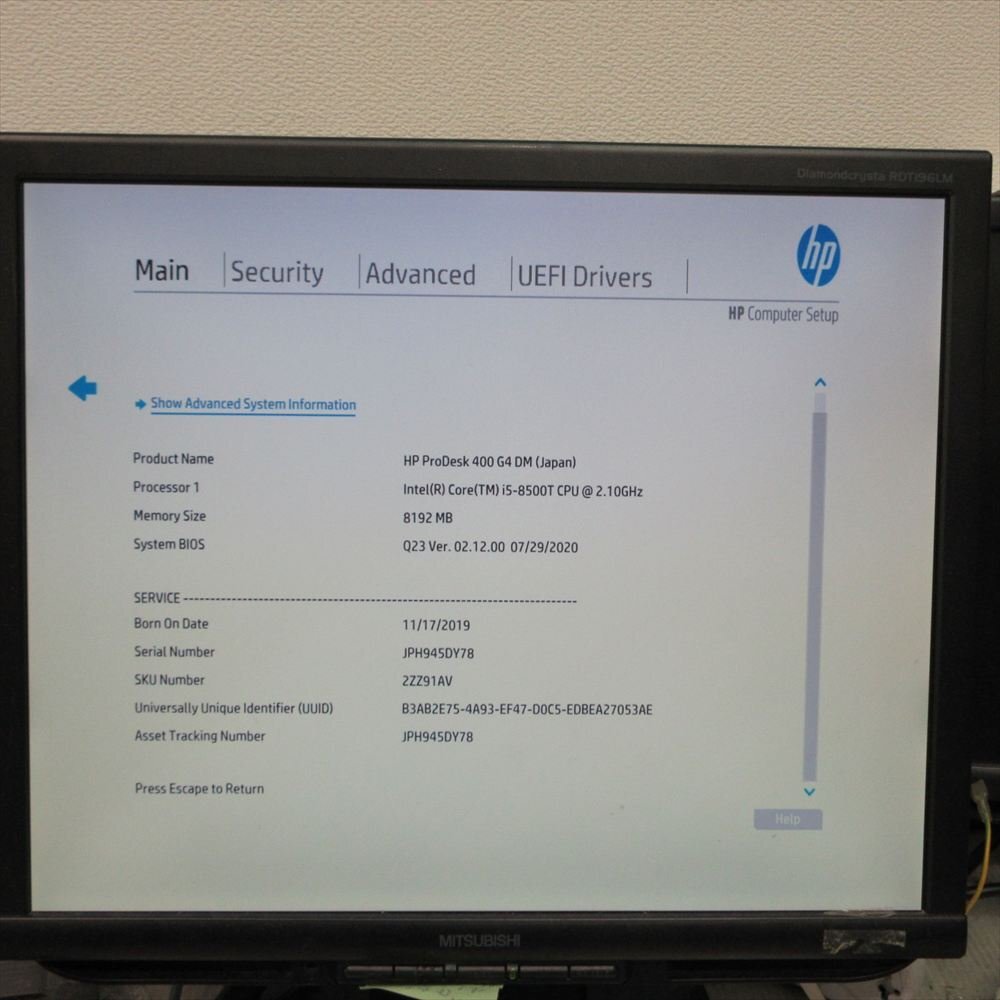 ※ 中古品のため、メーカー仕様とスペックや部品等、変更されている場合があります。 Core i5 8500T 2.10GHz SSDなし メモリ8GB DVDドライブ なしモデル Wi-fiなし |