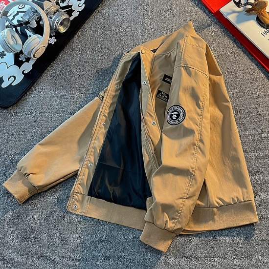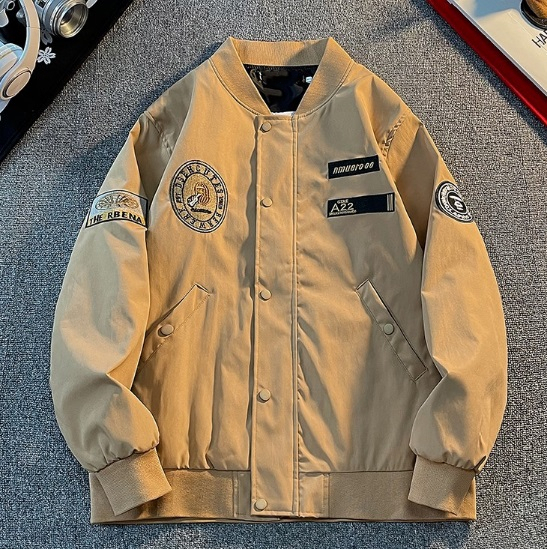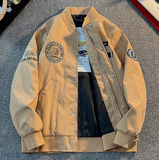 スタジャン♪新入荷 メンズ フライトジャケット 刺繍 ブルゾン 野球服 ゆったり 紳士 アウター アメカジ サイズ選択可 カーキ/L