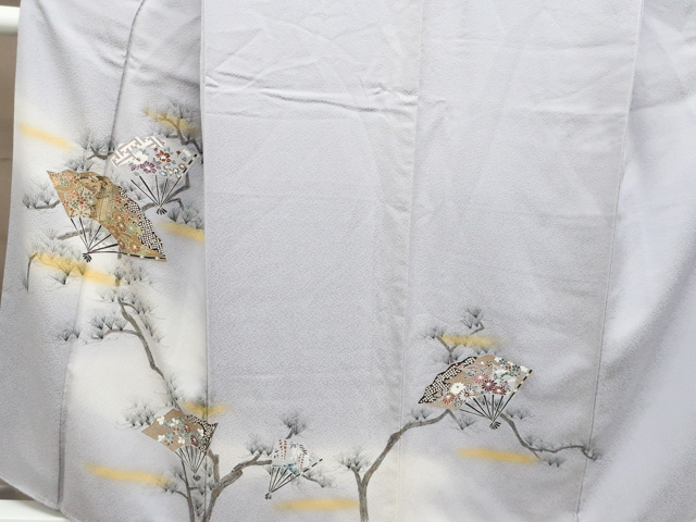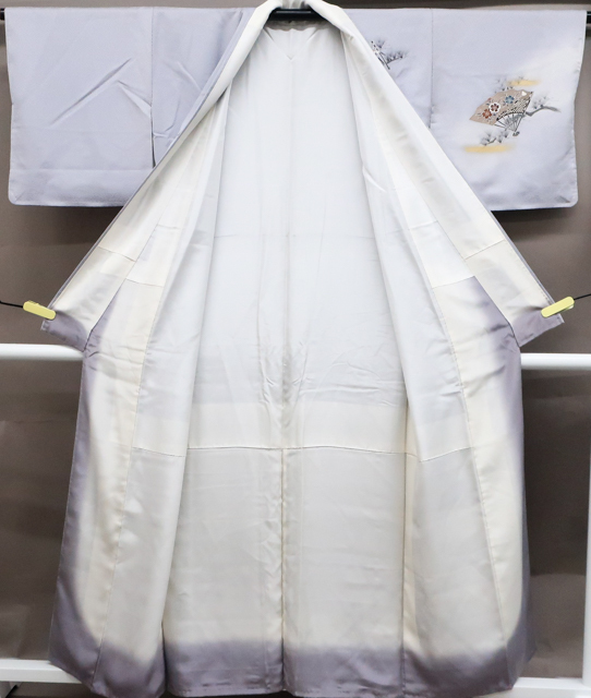 リサイクル商品のため、薄ヤケがございますがご着用いただけると存じます。 地色は、藤色です。 1枚目の画像が近いお色かと思われます。 素材は正絹です。 |