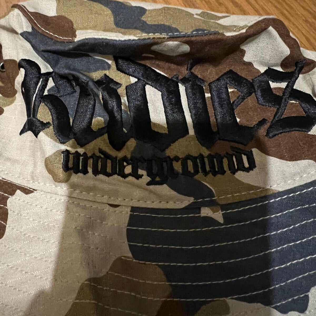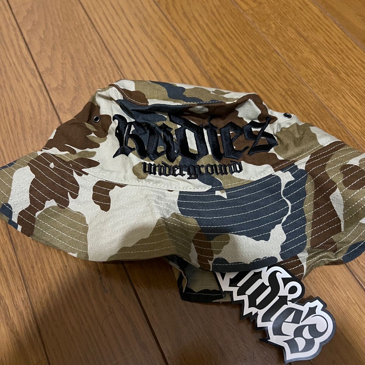 このバケットハットはカモフラージュ柄で、アウトドアやカジュアルなシーンに最適です。