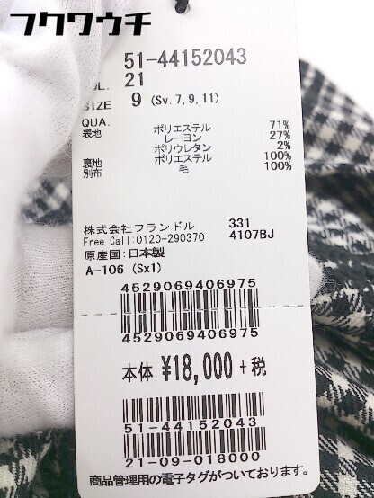 ◇ ◎ ●未使用● ef-de タグ 定価1.8万円 チェック 膝丈 フレア スカート サイズ 9 ブラック オフホワイト レディース