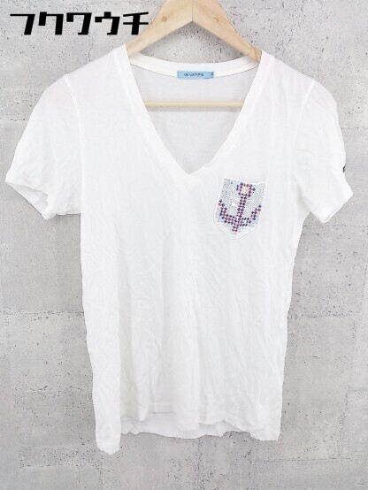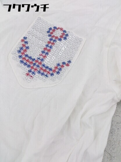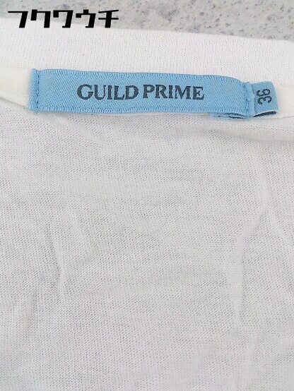 ◇ GUILD PRIME ギルドプライム Vネック スパンコール 半袖 Tシャツ カットソー サイズ36 オフホワイト レディース