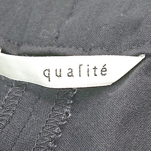 ◇ qualite カリテ バックウエストゴム ベルトループ 両サイドポケット ストレートパンツ サイズ36 ブラック レディース E