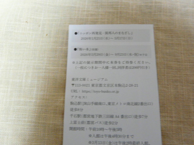 東洋文庫ミュージアムの無料招待券です 有効期限 ~2026年6月29日まで