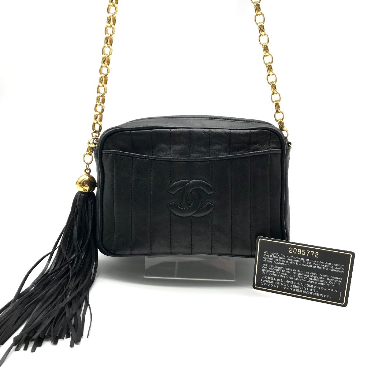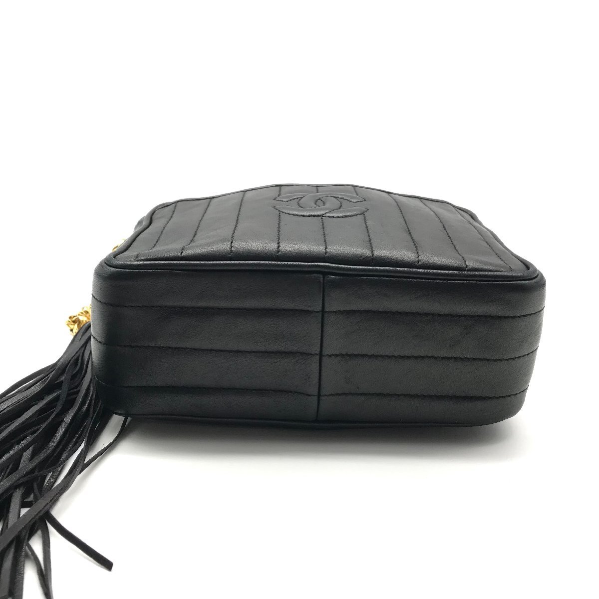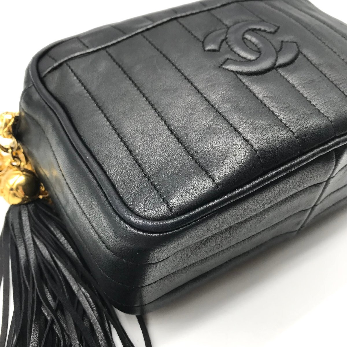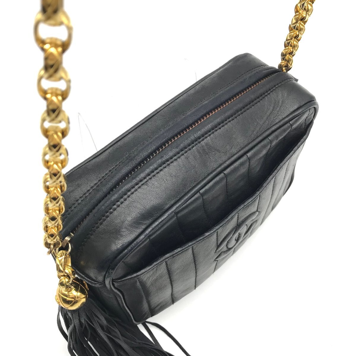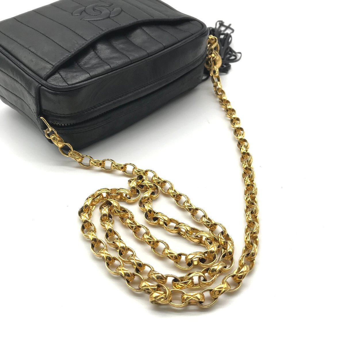 1円 良品 CHANEL シャネル マドモアゼル ココマーク ラムスキン フリンジ レザー チェーン ショルダー バッグ レディース ブラック a11071 | |||