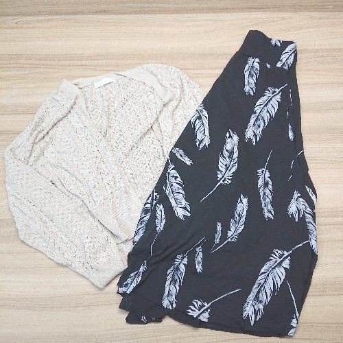 ◇ 《 CECILMcBEE セシルマクビー まとめ2点セット サイズM 柄物 前ボタン閉めなし カーディガン/スカート レディース 》 E