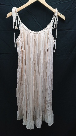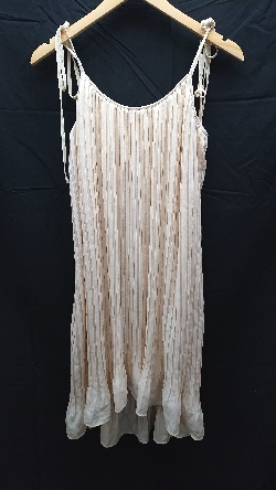 ◇ mysty woman ミスティウーマン 裏地 プリーツ ノースリーブ ひざ丈 ワンピース サイズF クリーム系 レディース E