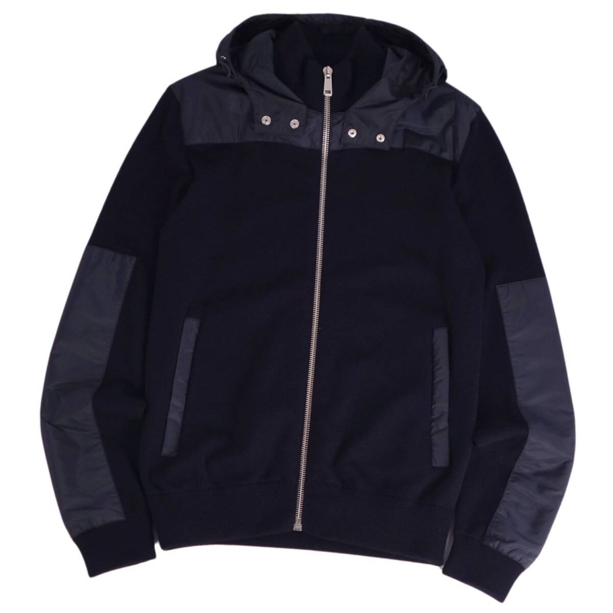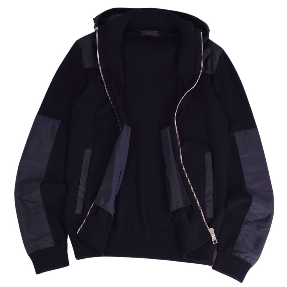 | 美品 プラダ PRADA ジャケット ニット パーカー フード付き ウール ナイロン アウター メンズ 48(M相当) ネイビー |