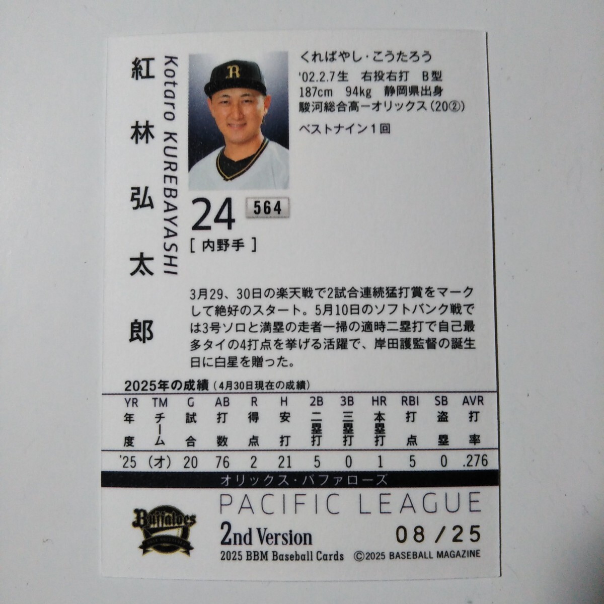 BBM2025 2nd オリックス 紅林弘太郎 25枚限定 レッド箔サイン パラレル カード No.564