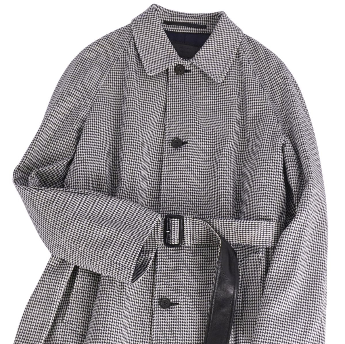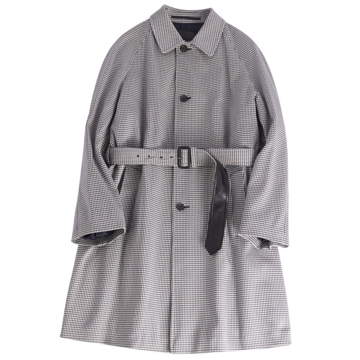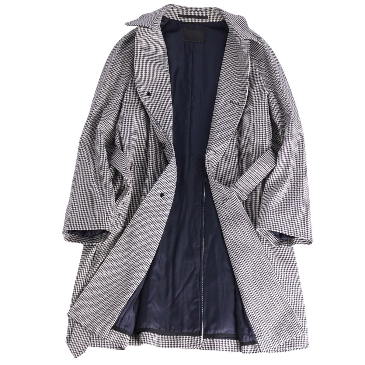 | 極美品 プラダ PRADA コート ベルト付き ステンカラーコート バルマカーンコート 中綿入り 千鳥格子 メンズ L グレー |