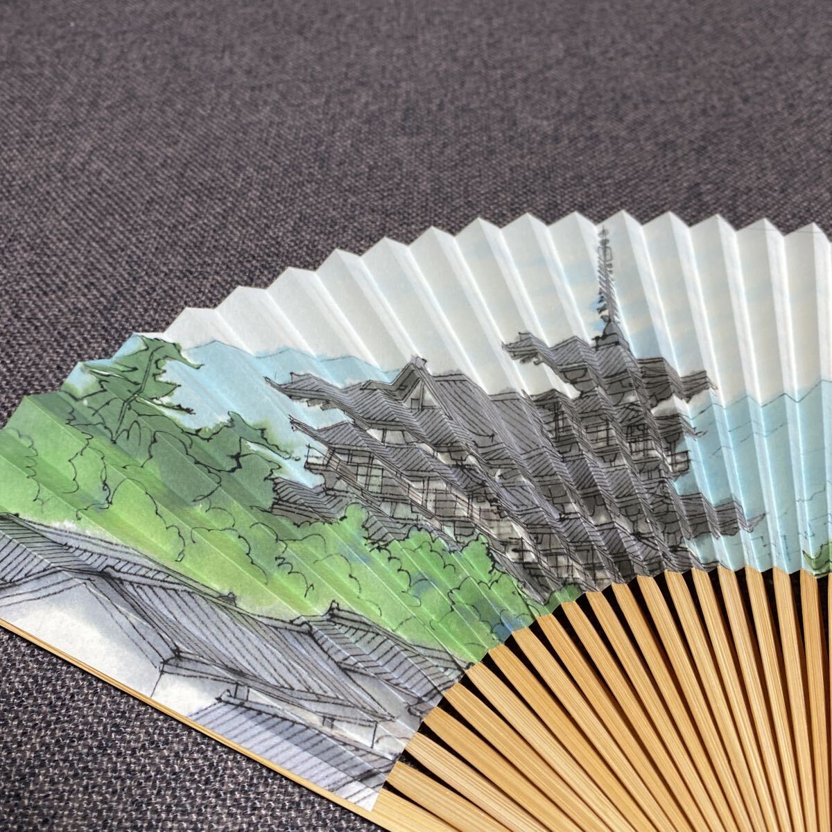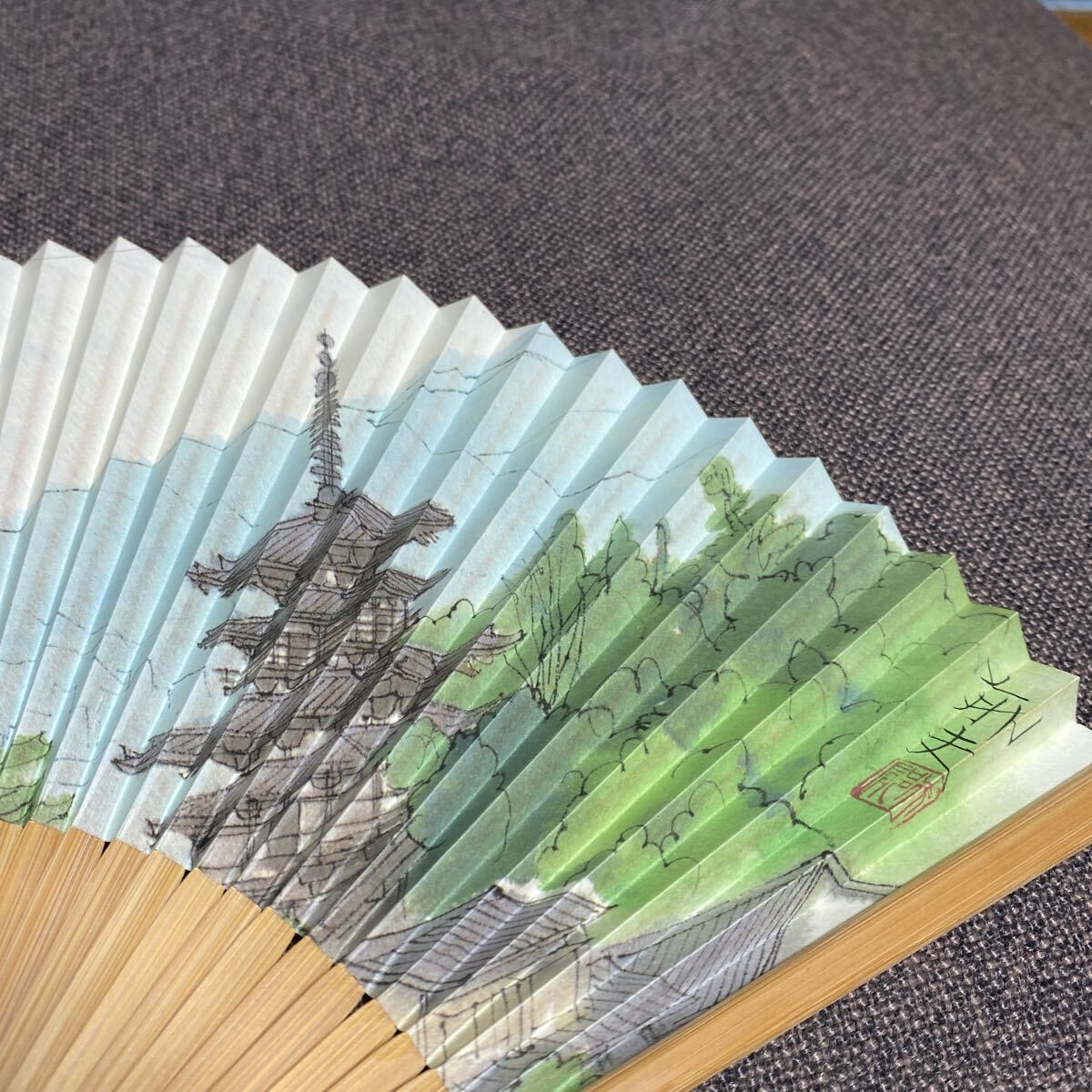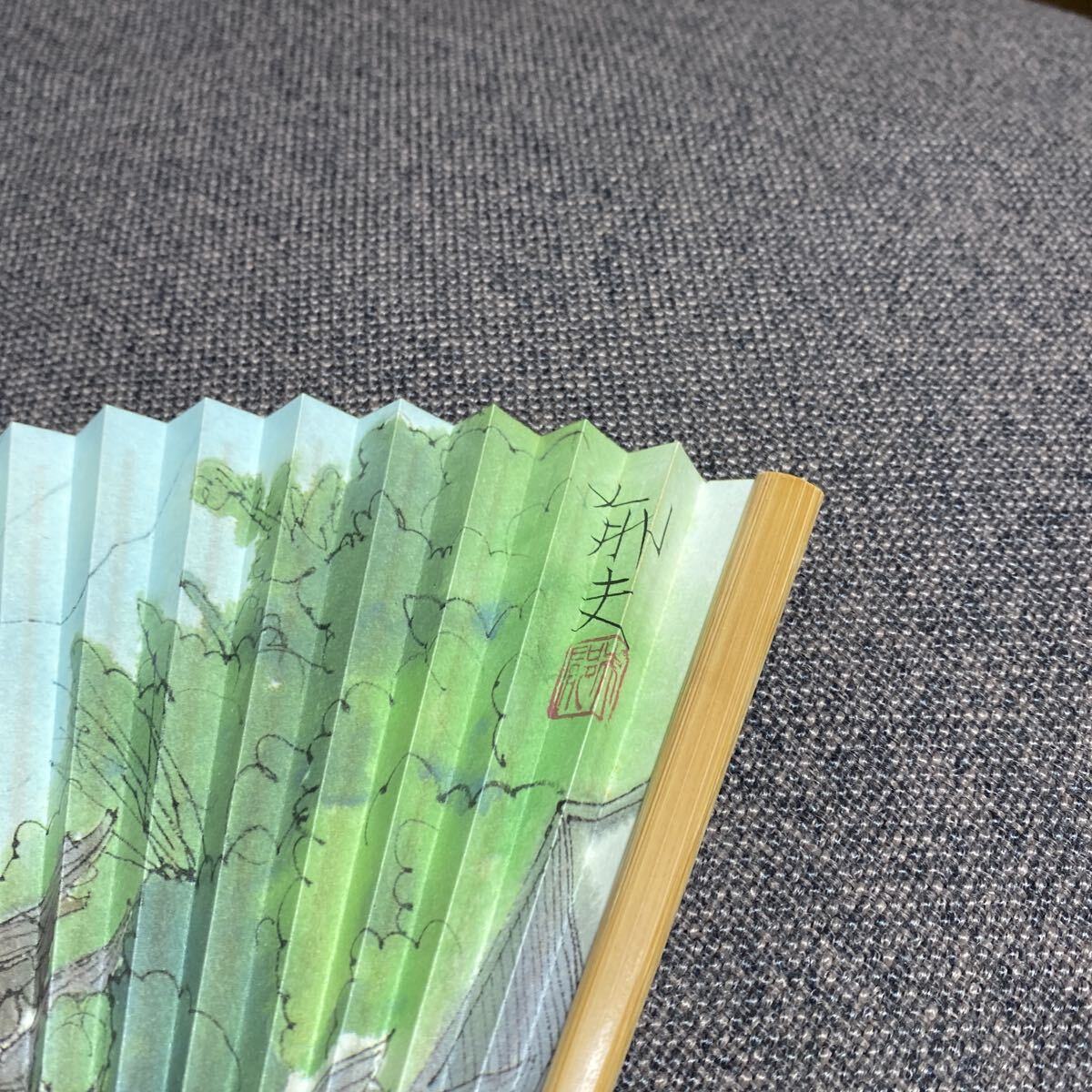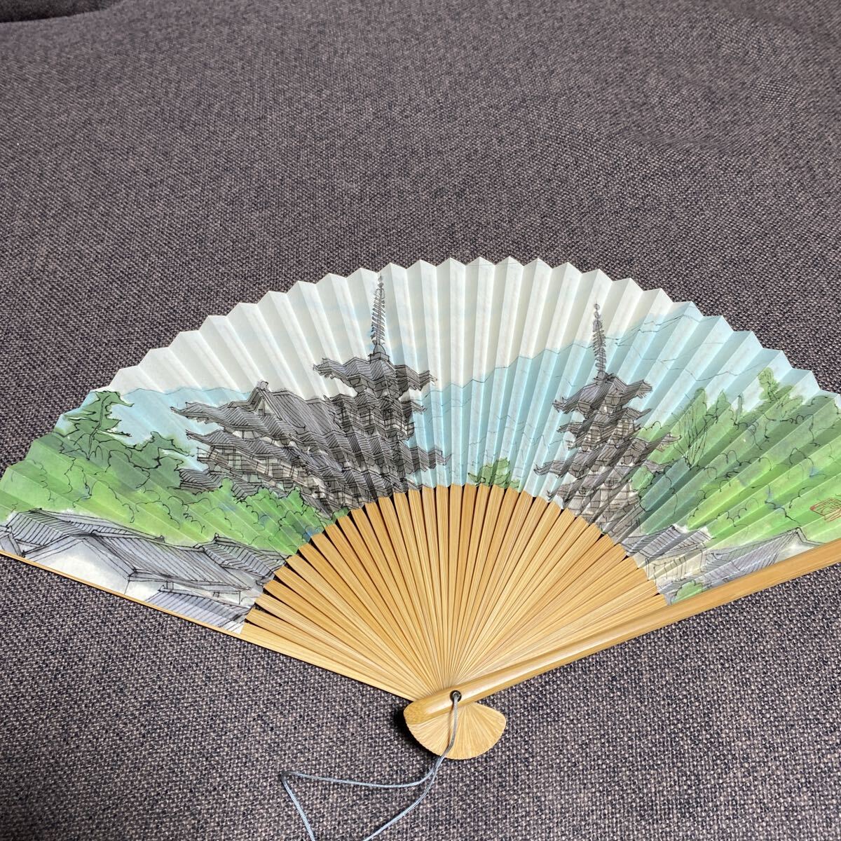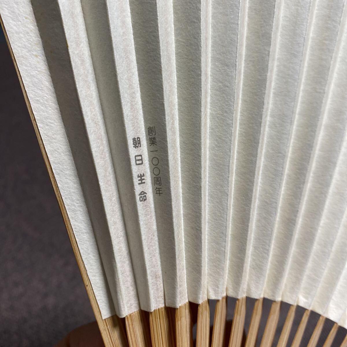 扇子本体や箱に茶色いシミが部分的に付いています。また、裏面の和紙部分に朝日生命と小さく記載されています。