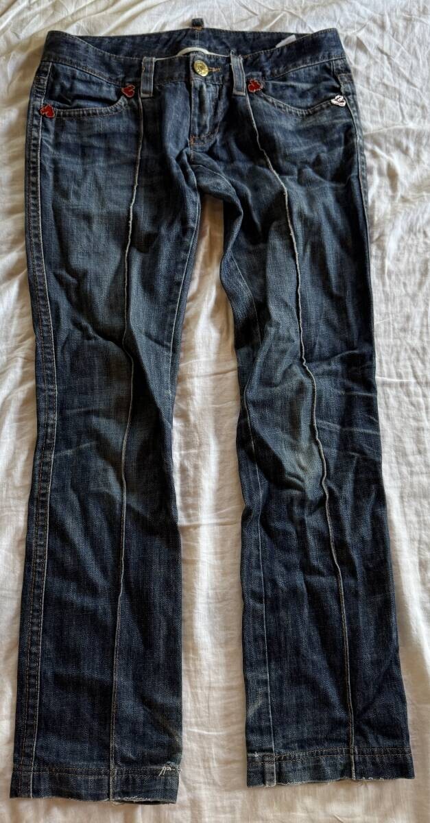 Dsquared2 ディースクエアード デニムパンツ 42  ピンバッヂデコ レザー 高級タイプ ジーンズ