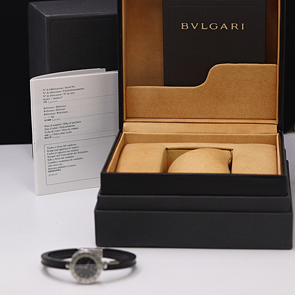 1円 保/箱付 ブルガリ ビーゼロワン BZ22S プッシュ式 QZ ブラック文字盤 レディース腕時計 3350100 11JWY MST