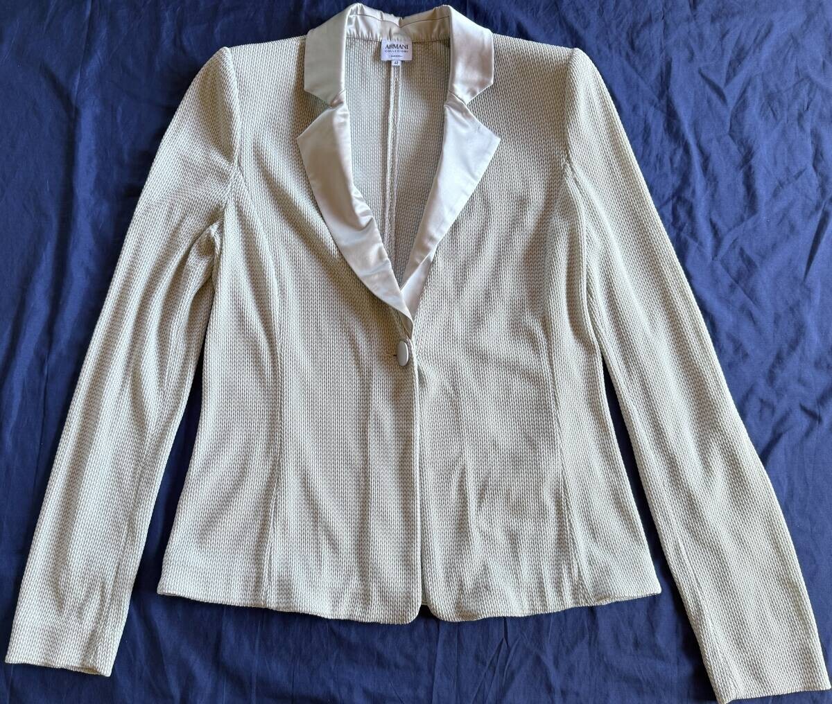 アルマーニコレッツォーニ ジャケット 42 テーラード 白ボタン 高級タイプ ニット 切り替え グレイ