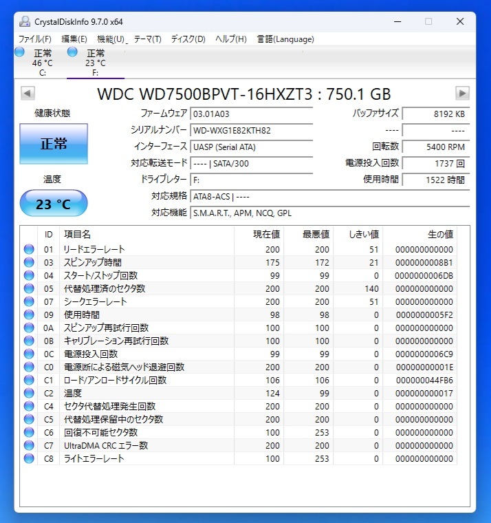 高速通信 USB3.0 ポータブルHD750Gb 外付けHDテレビ録画 対応 管理50 健康正常