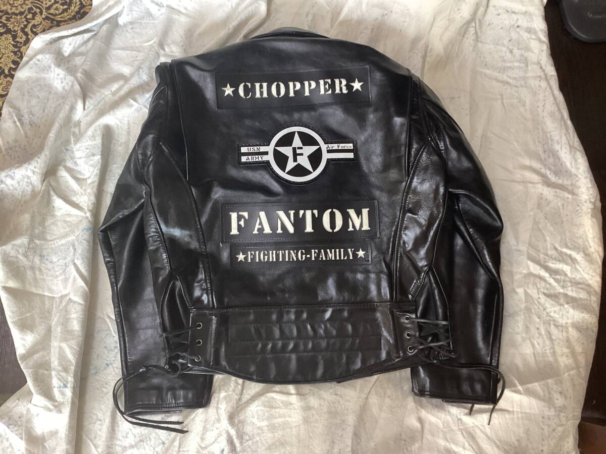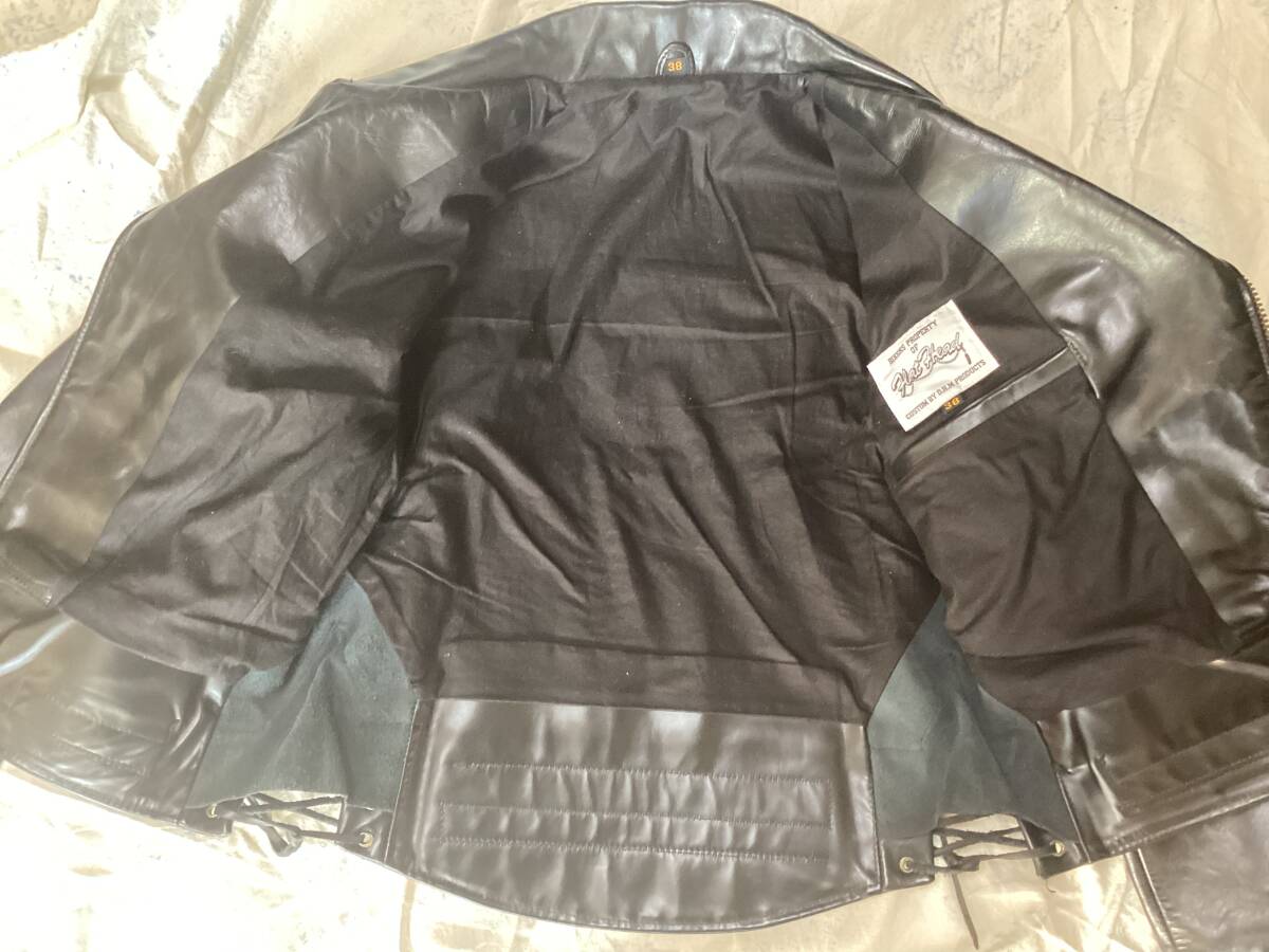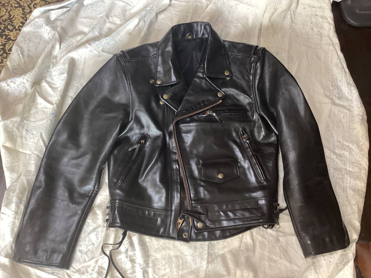 ●フラットヘッドのダブルライダースです。質の高さホースハイド製で、大変良い雰囲気です。ジッパーもタロンと細部にも抜かりないです。先日このオークションで購入した物ですが、残念ながらサイズが小さく、出品しました。前オーナーさんが新品で購入後、チョッパーでカスタムしたそうです。
