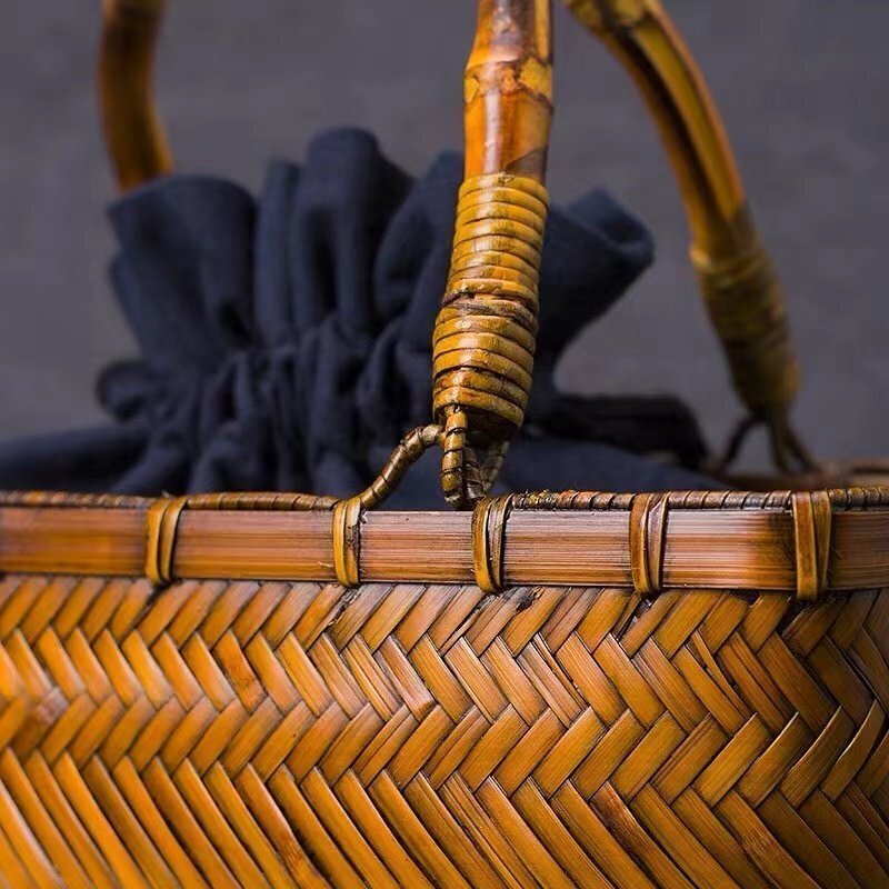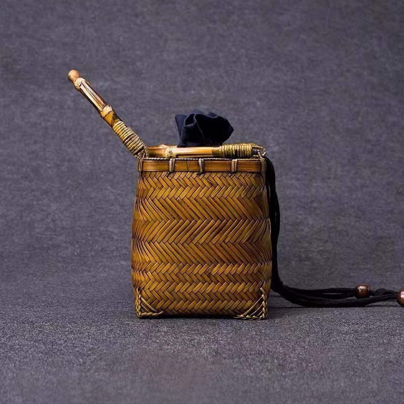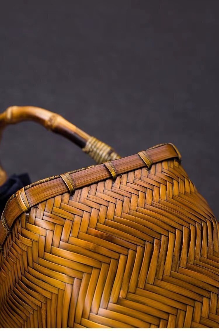 美品☆竹編み上げカゴバック  手作りバスケット お洒落買い物カゴ 収納バッグ 可愛い新品