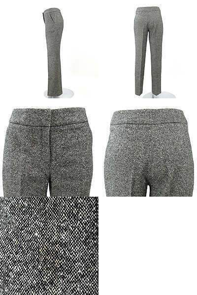| 体系を美しくカバーしてくれるストレートシルエット♪ センタープレス入りで脚長効果を高めてくれるのも嬉しいポイント。 モノトーンカラーのツイードデザインですので、 パンツスタイルでもエレガントな雰囲気を演出してくれます。 ウエストはダブルホックで留めるお仕立てとなっており、 お腹周りをすっきりと綺麗に見せてくれますよ。 流行りすたりなく、永く愛用して頂ける逸品でお薦めです☆ ファスナーの右付近に薄汚れがみられます。 ウエスト約68cm ヒップ約90cm 股上約25.5cm 股下約77.5cm 渡り幅約27cm 裾幅約21cm 【サイズ】:(36) 【素 材】:(表/毛60%絹33%ナイロン5%ポリウレタン2% 裏/キュプラ100%) 【 色 】:(グレー、黒、白) 【程 度】:(B) 管理番号 20120416-017 139 049 | ||||