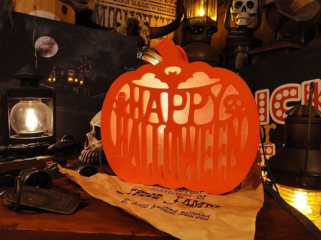 スイッチを入れるとジャック・オ・ランタンがホワンと浮かび上がるという作り。