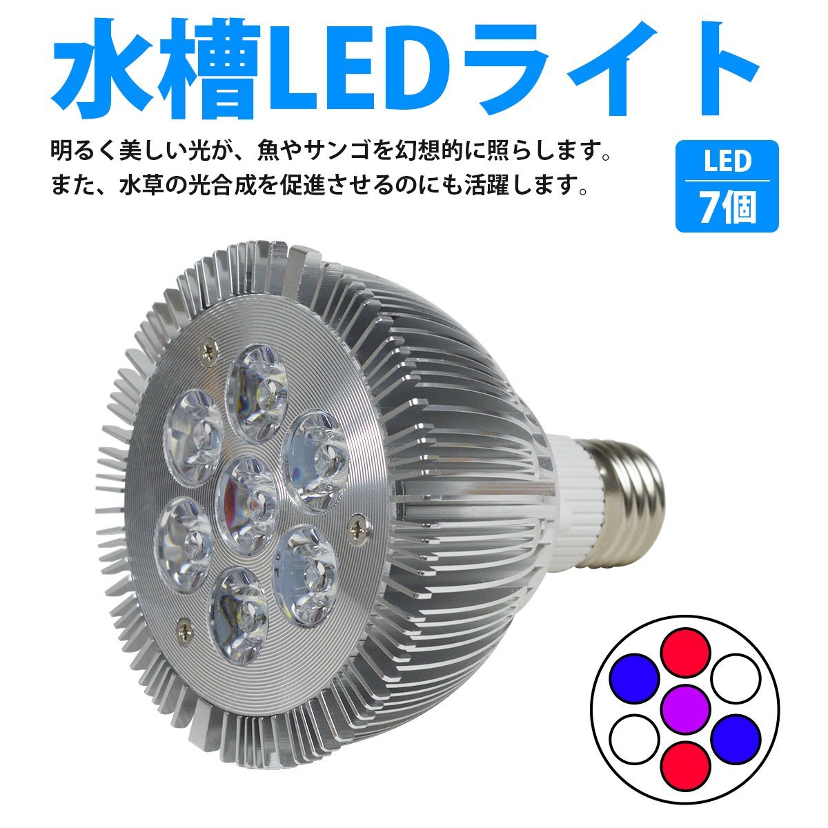 水槽 スポット ライト 電球 7LED 14W 白2/青2/赤2/紫外線1 口金 E26 アクアリウム 電球 照明 植物育成 水草 サンゴ 熱帯魚