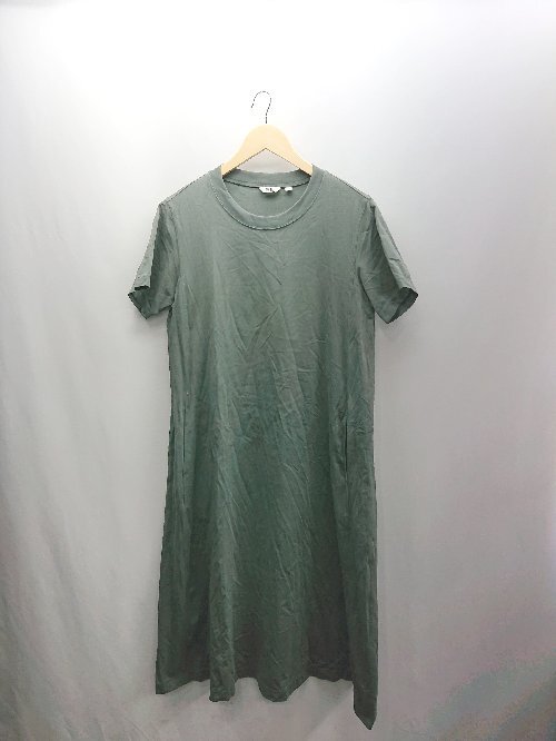 ◇ ⊂ UNIQLO ユニクロ エアリズム 半袖 ロング ワンピース サイズL カーキ系 レディース E