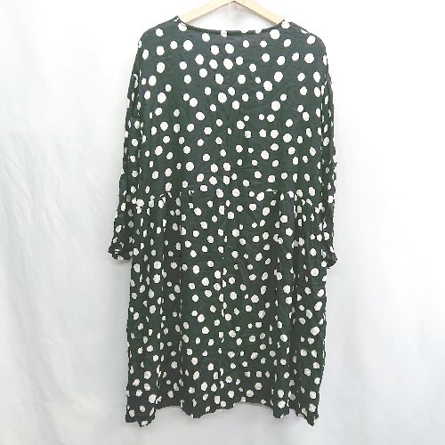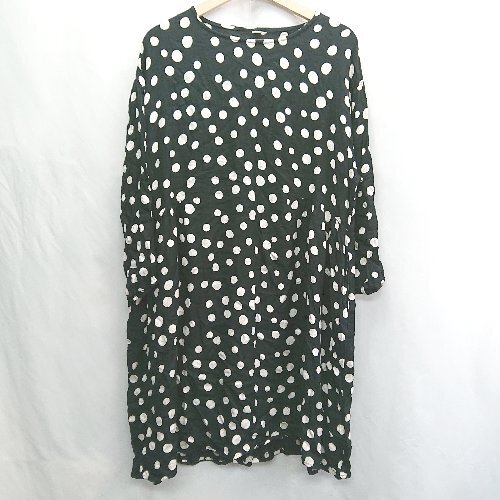 ◇ ⊇ 株式会社フレンズヒル ドット柄 長袖 ロング丈 ワンピース サイズ表記なし ブラック ホワイト レディース E