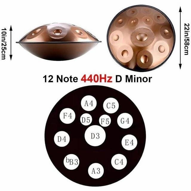 【12ノート】3つのセンターノートと9つのトーンを含む、ニ短調の12ノートデザインのハンドドラム。 【ハンドパンの選び方】 440 Hz:ほとんどの楽器の周波数に近く、ポップスや歌の周波数と同じで、他の楽器との演奏に適しています。 【優れた音質】ハンドパンドラムの音色は幻想的で、長い持続音、クリアで明るい倍音を持っています。 他の楽器と一緒に演奏すると、ハンドパンドラムは明らかな共鳴と極端な振動効果を生み出し、リスナーに究極の音楽体験を与えます。上手に演奏できるようになると、演奏中に目を閉じて、振動しながらもメロディアスなドラム演奏に注意深く耳を傾けることができます。 。 【高品質素材】ハンドボードドラムは高品質の鋼材で作られており、窒化処理後、ハンドボードドラムの硬度と耐摩耗性が大幅に向上し、防錆性も向上し、音色がよりエーテル的でより安定します。 長年連れ添った、古い友人のようなものですので、使わないときは大切に扱ってください。あなたがいると幸運です。 【プレミアムクラシック】ハンドパン愛好家向けに設計されたスチール製ハンドパン楽器。