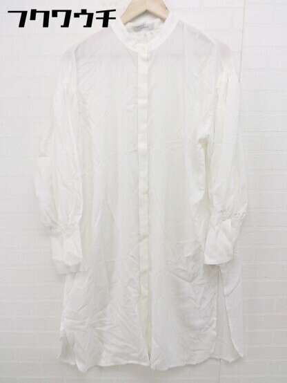 ◇ JEANASIS ジーナシス スリット バンドカラー 長袖 膝下丈 シャツ ワンピース サイズF ホワイト レディース