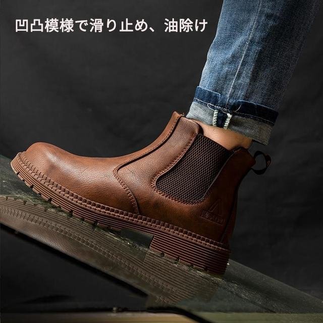 安全靴 ハイカット メンズ 防水安全靴 作業靴スニーカー 溶接用ブーツ つま先保護 おしゃれ 耐滑 チェルシーブーツ カーキ色 25cm