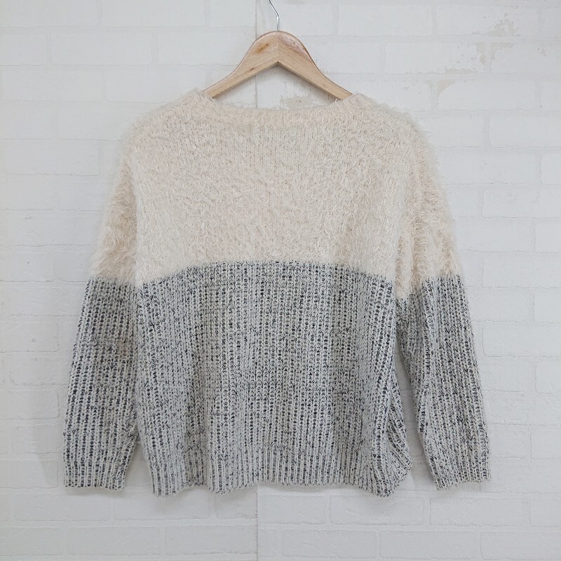 ◇ JEANASIS ジーナシス シャギーニット 切替 長袖 セーター サイズF ベージュ系 マルチ レディース E