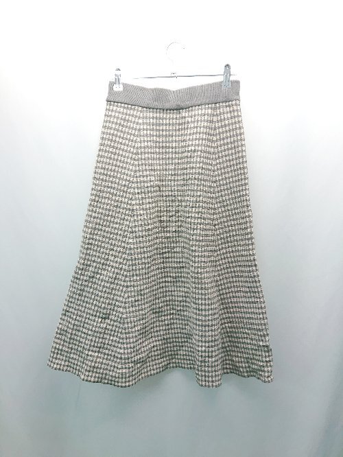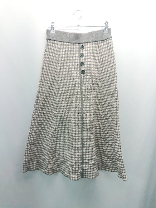 ◇ DHOLIC チェック柄 ニット ウエストゴム カジュアル ロング丈 フレア スカート 表記なし グレー レディース E