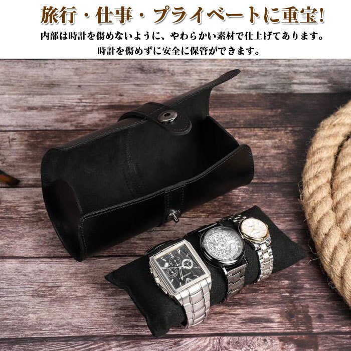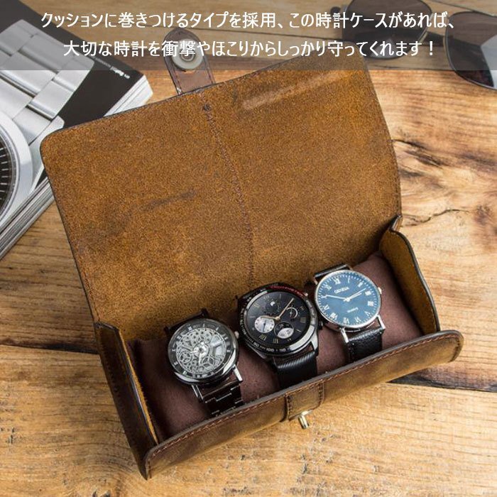 腕時計ケース 3本用 コレクションケース 本革コーヒー 3本 | 時計 腕時計 ケース watch 観賞用 インテリア かっこいい ☆ブラック